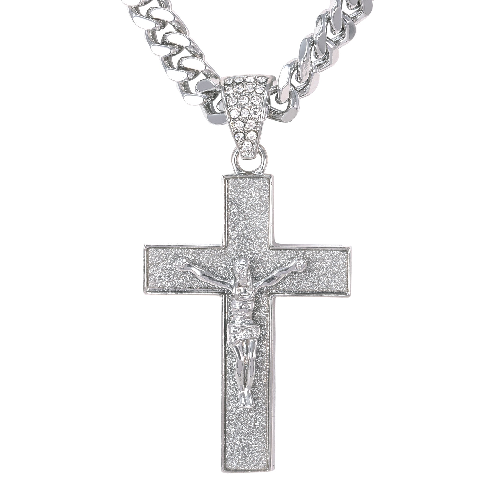 Our Iced Out Extra Large Pendant Series is available in gold and silver plated alloy. These pendants come with a 9mm Solid Cuban Chain measuring 30" in length and feature simulated crystals that resemble the sparkle of real diamonds.