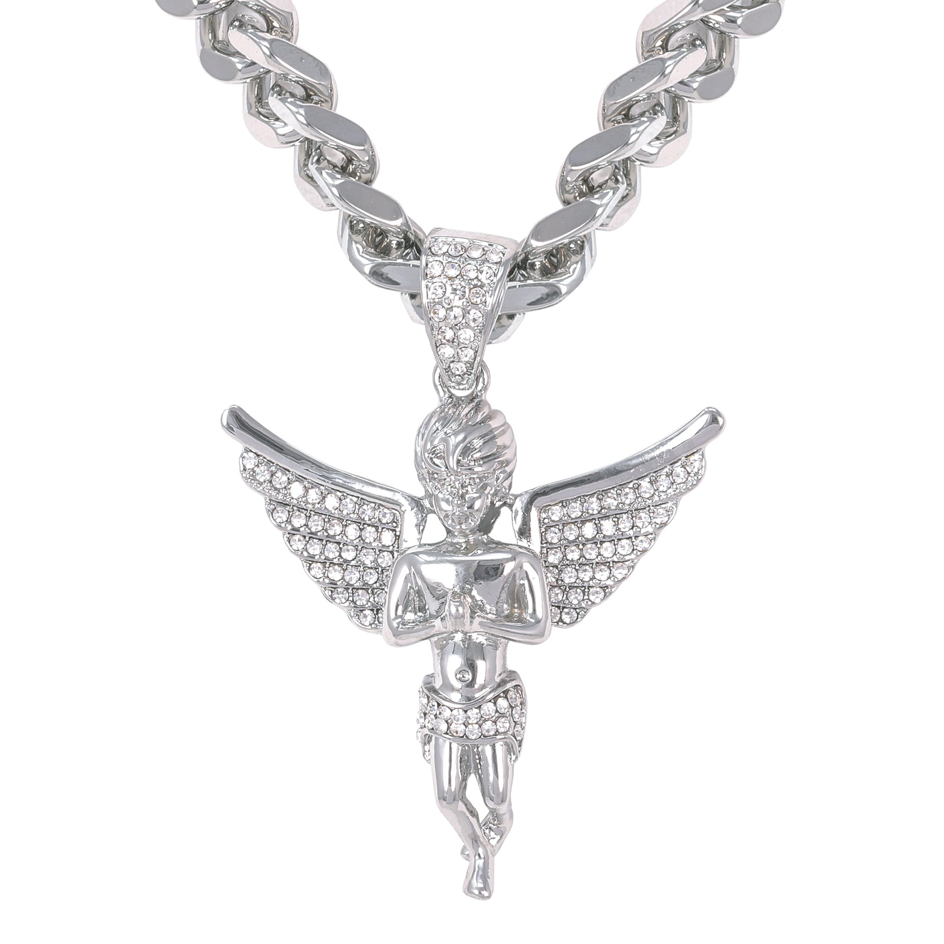 Our Iced Out Extra Large Pendant Series is available in gold and silver plated alloy. These pendants come with a 9mm Solid Cuban Chain measuring 30" in length and feature simulated crystals that resemble the sparkle of real diamonds.
