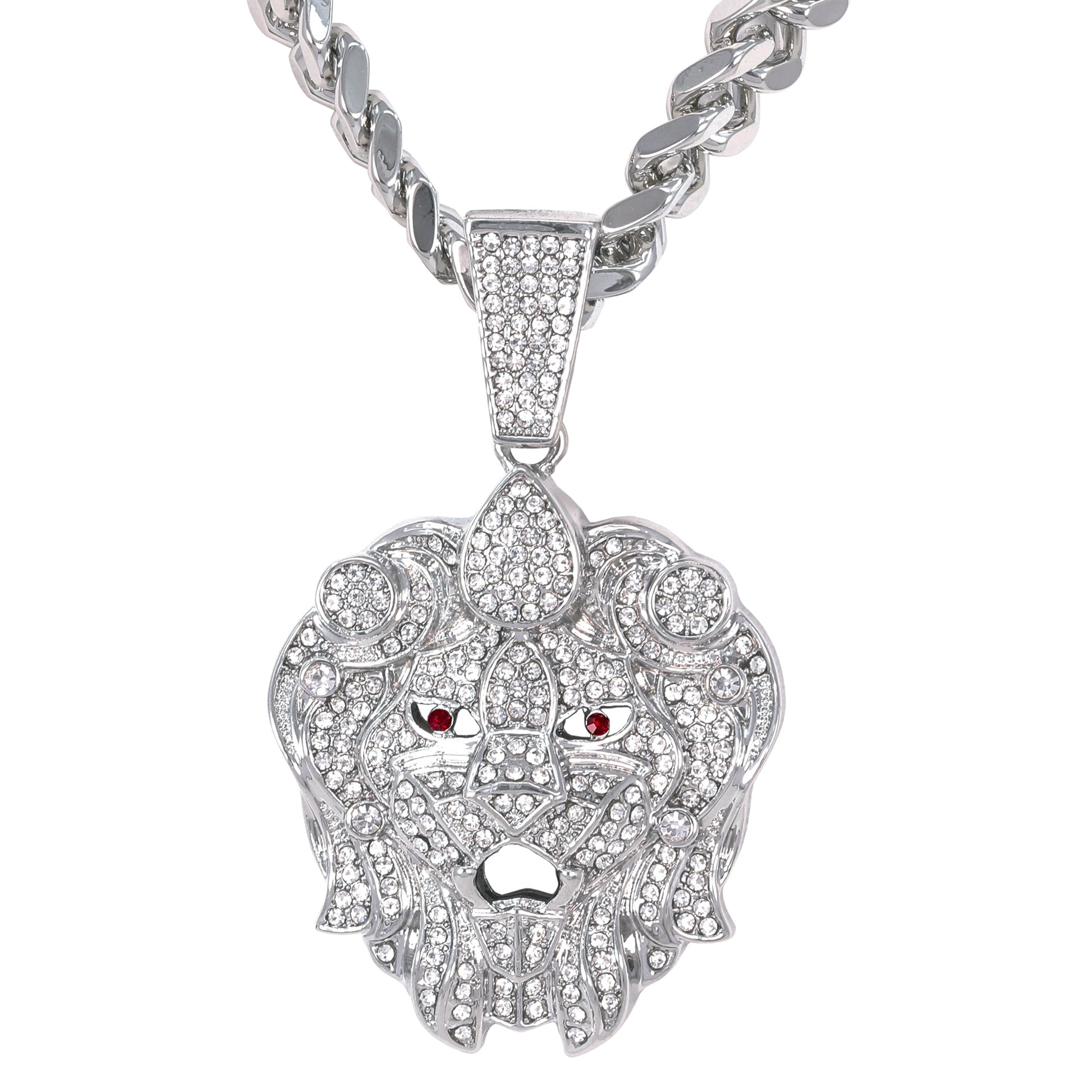 Our Iced Out Extra Large Pendant Series is available in gold and silver plated alloy. These pendants come with a 9mm Solid Cuban Chain measuring 30" in length and feature simulated crystals that resemble the sparkle of real diamonds.