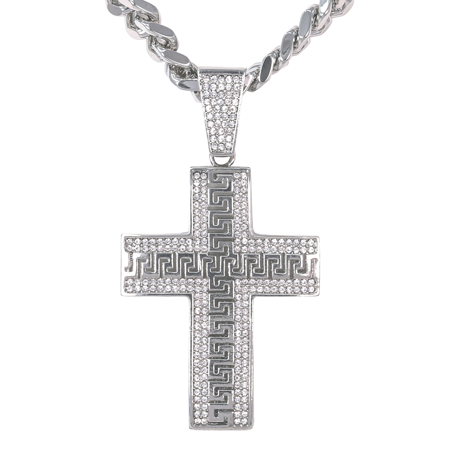 XL Iced Cross Pendant with 9mm Solid Cuban Chain 30" - HC-6045**