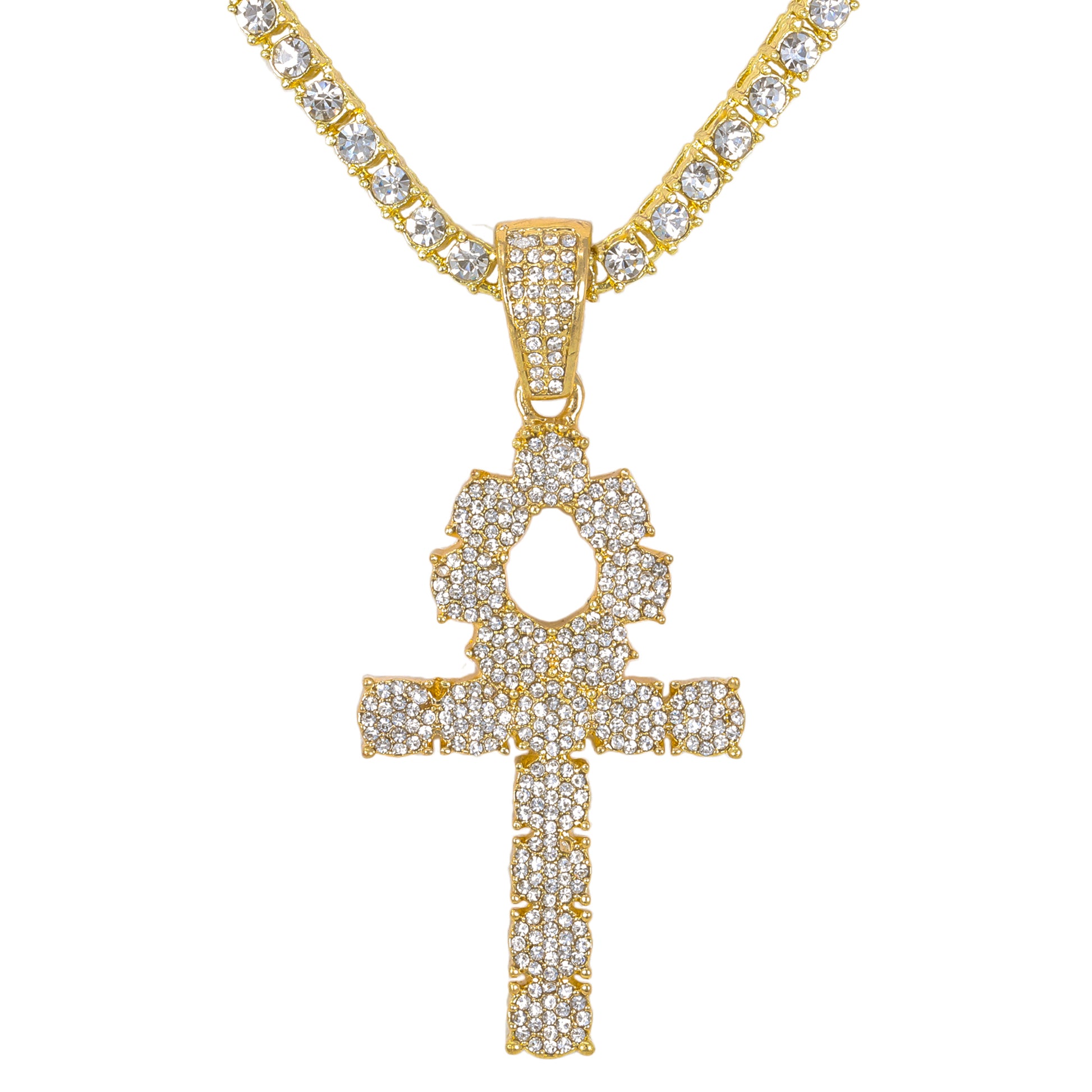 Our Iced Out Pendant Series is available in gold and silver plated alloy. These pendants come with a 3.5mm Tennis Chain measuring 24" in length and feature simulated crystals that resemble the sparkle of real diamonds. With a 2.5-inch size, this collection offers a stylish and subtle choice.