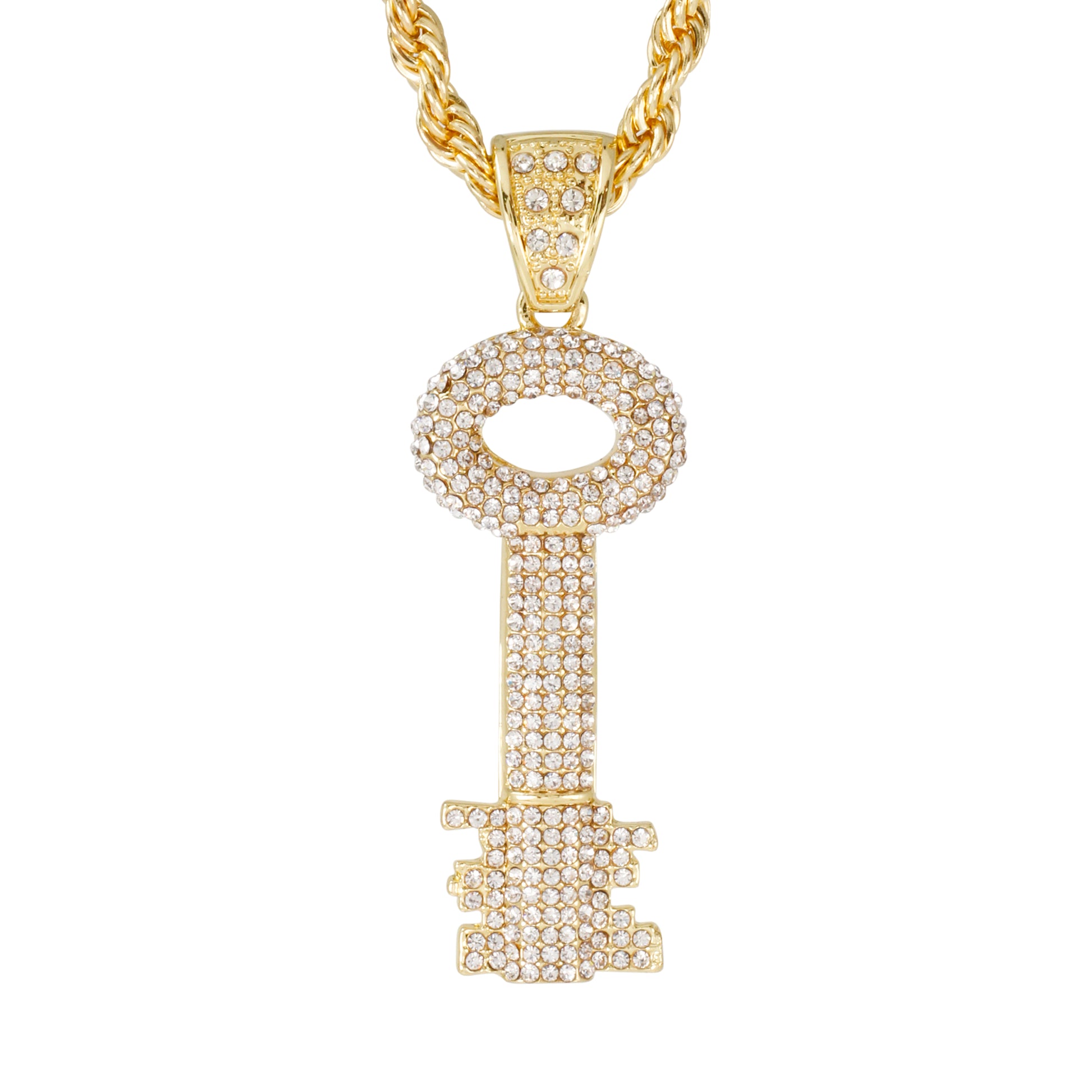 Iced Large Key Pendant with 8mm Rope Chain 24" - HC-5065**