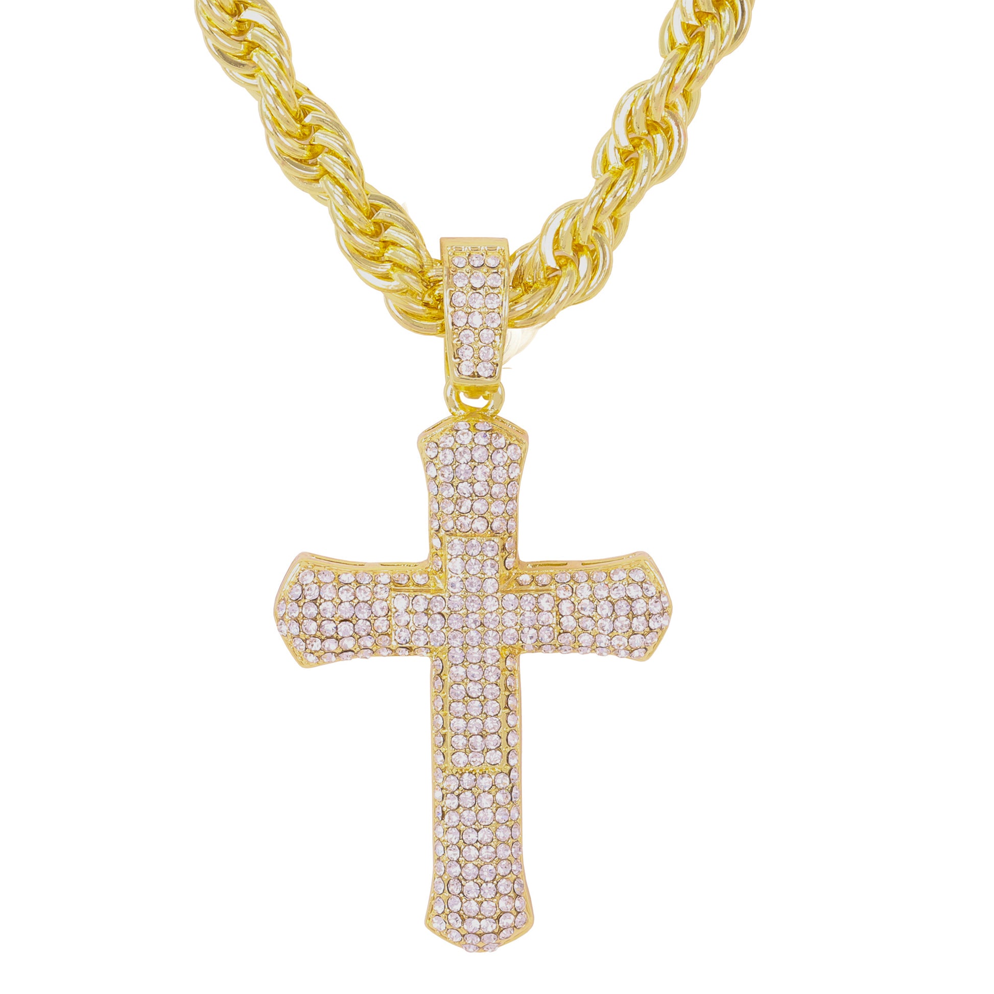Our Iced Out Large Pendant Series is available in gold and silver plated alloy. These pendants come with a 8mm Solid Rope Chain measuring 24" in length and feature simulated crystals that resemble the sparkle of real diamonds.