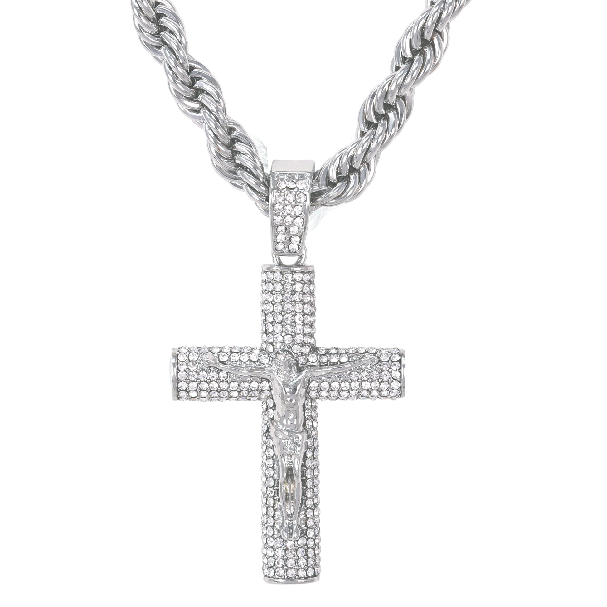 Iced Large Cross Pendant with 8mm Rope Chain 24" - HC-8022
