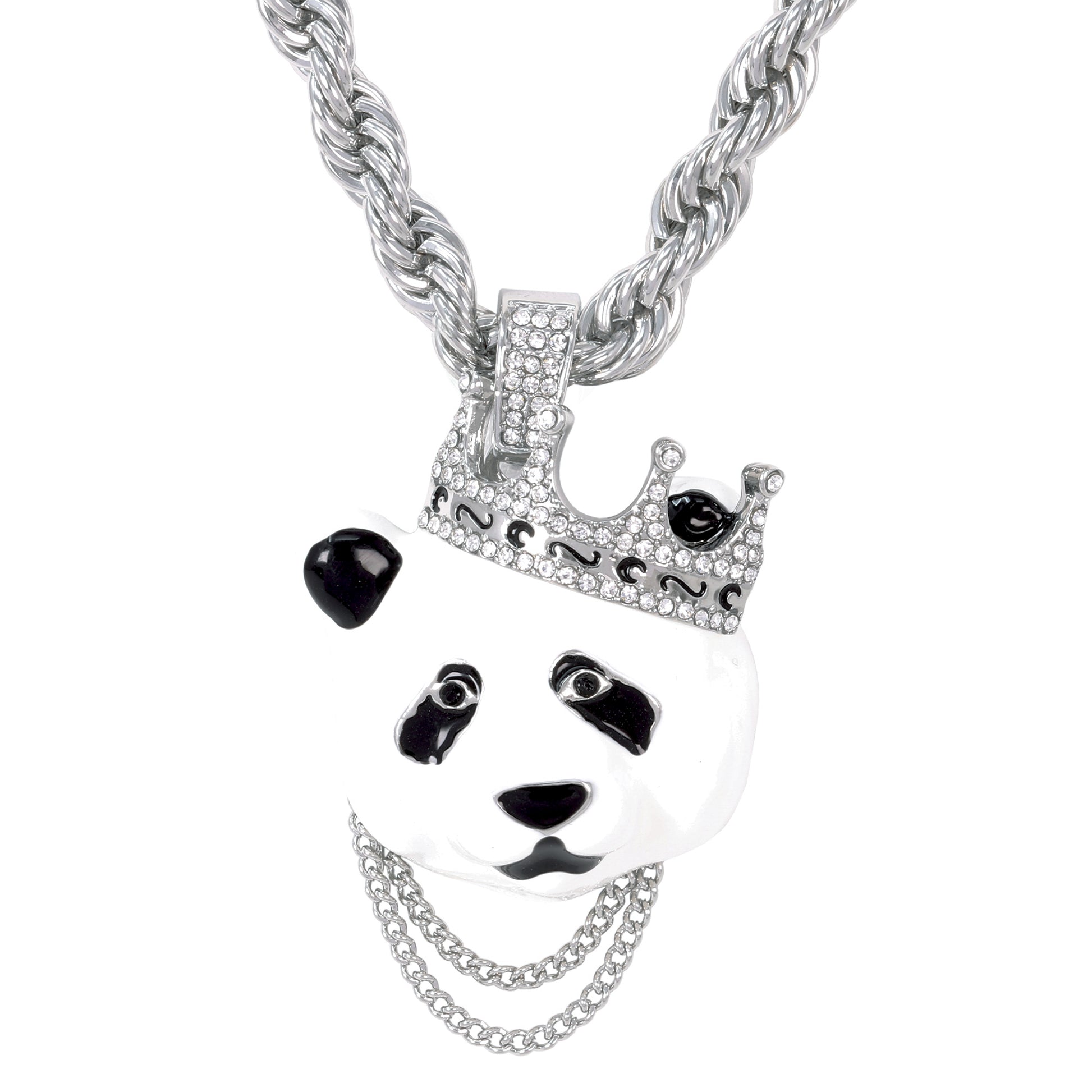 Iced Large Panda Pendant with 8mm Rope Chain 24" - HC-8029**