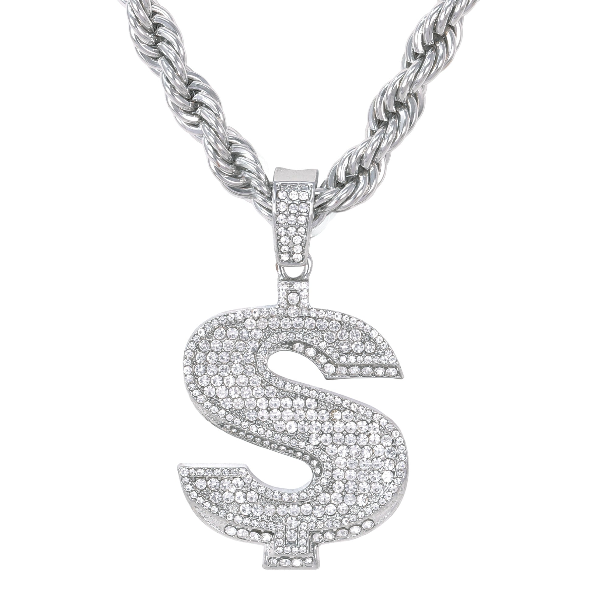 Our Iced Out Large Pendant Series is available in gold and silver plated alloy. These pendants come with a 8mm Solid Rope Chain measuring 24" in length and feature simulated crystals that resemble the sparkle of real diamonds.