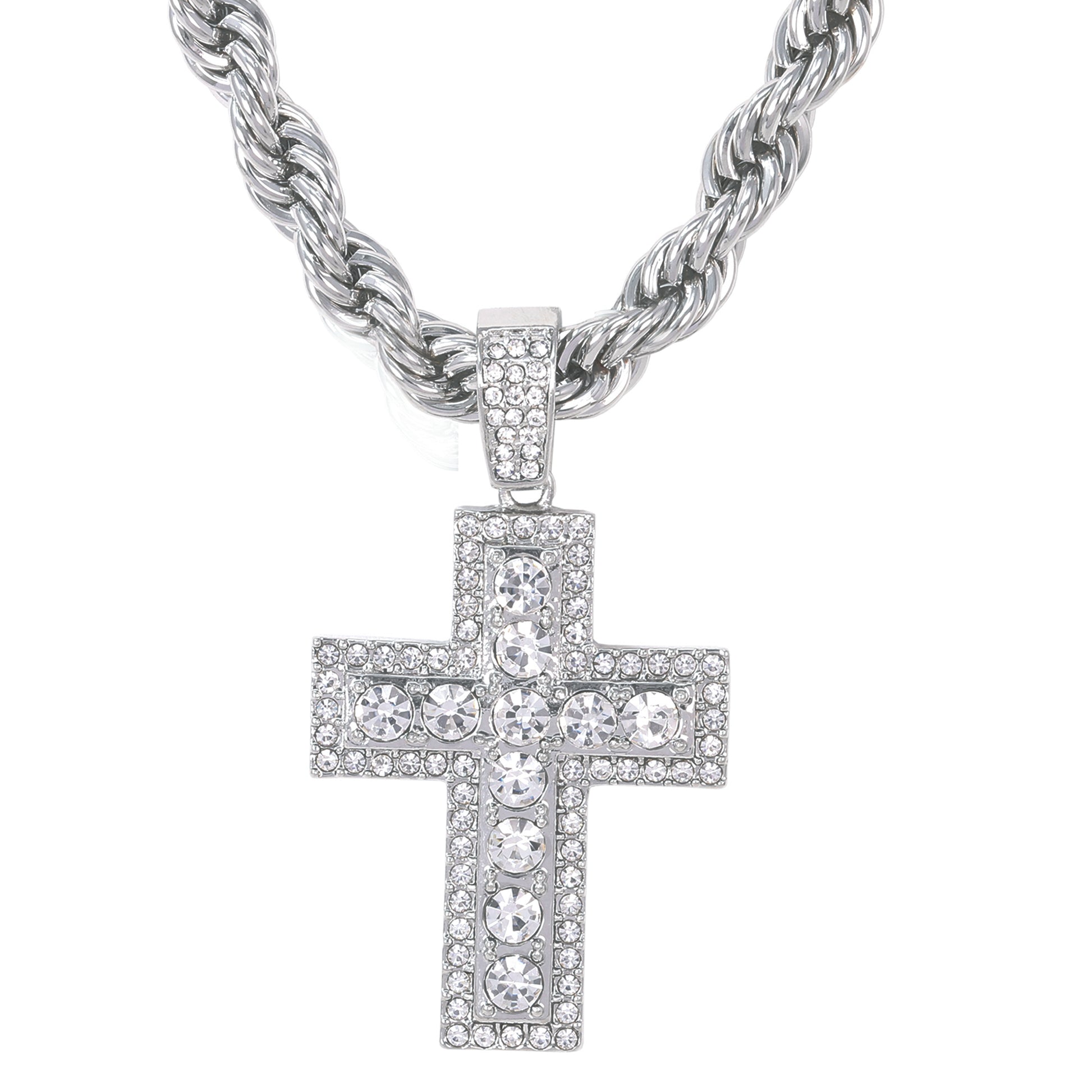 Iced Large Cross Pendant with 8mm Rope Chain 24" - HC-8043