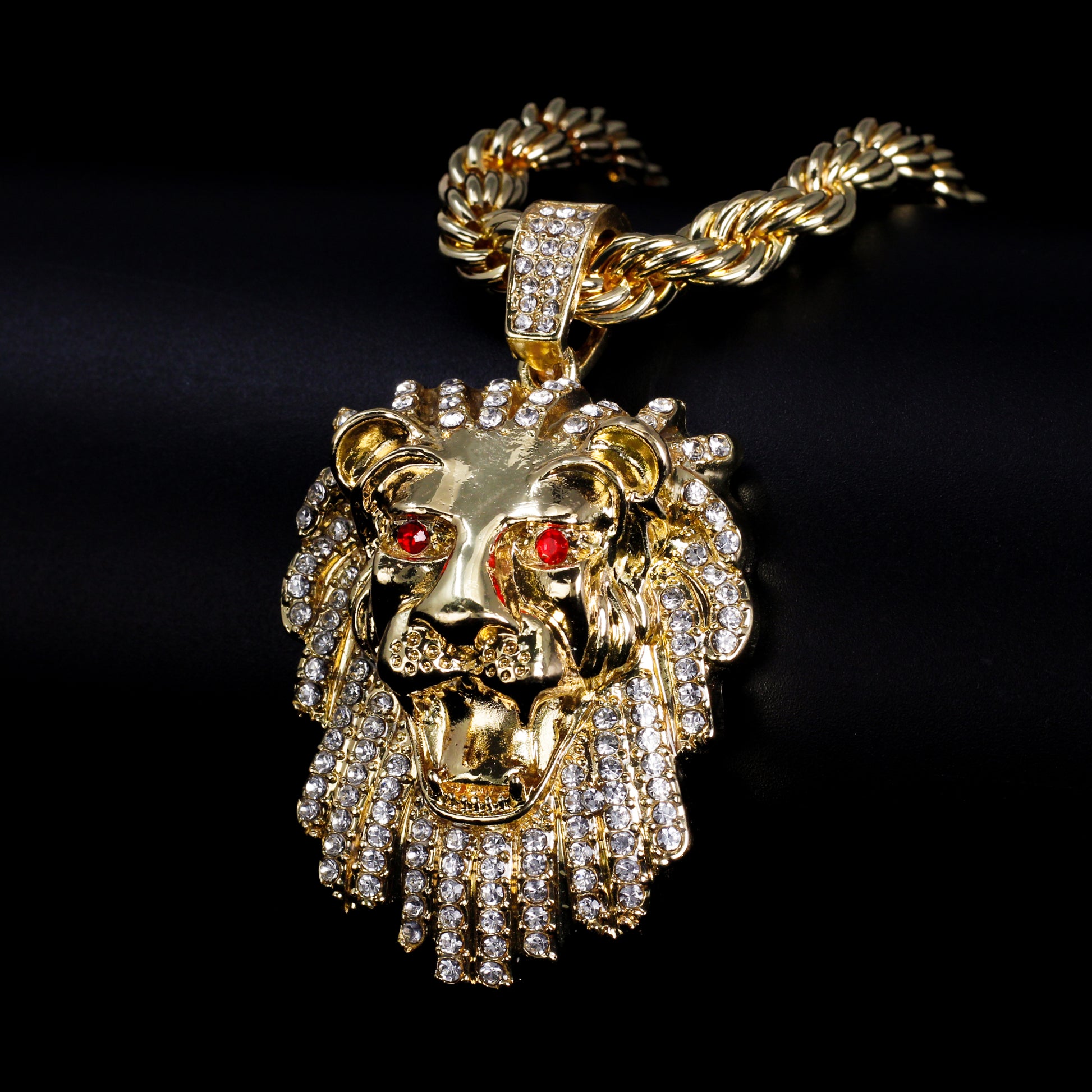 Iced Large Lion Pendant with 8mm Rope Chain 24" - HC-8054