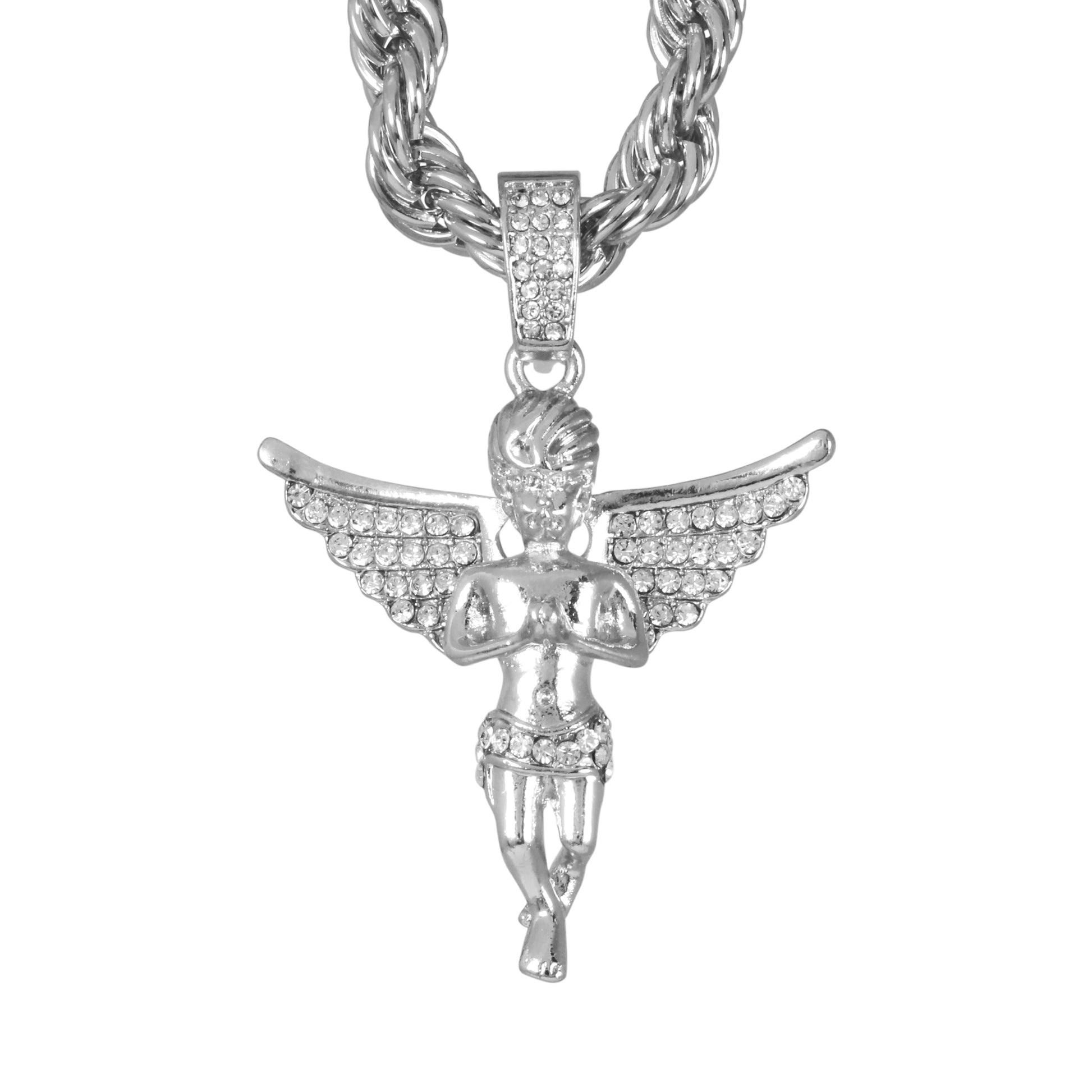 Our Iced Out Large Pendant Series is available in gold and silver plated alloy. These pendants come with a 8mm Solid Rope Chain measuring 24" in length and feature simulated crystals that resemble the sparkle of real diamonds.