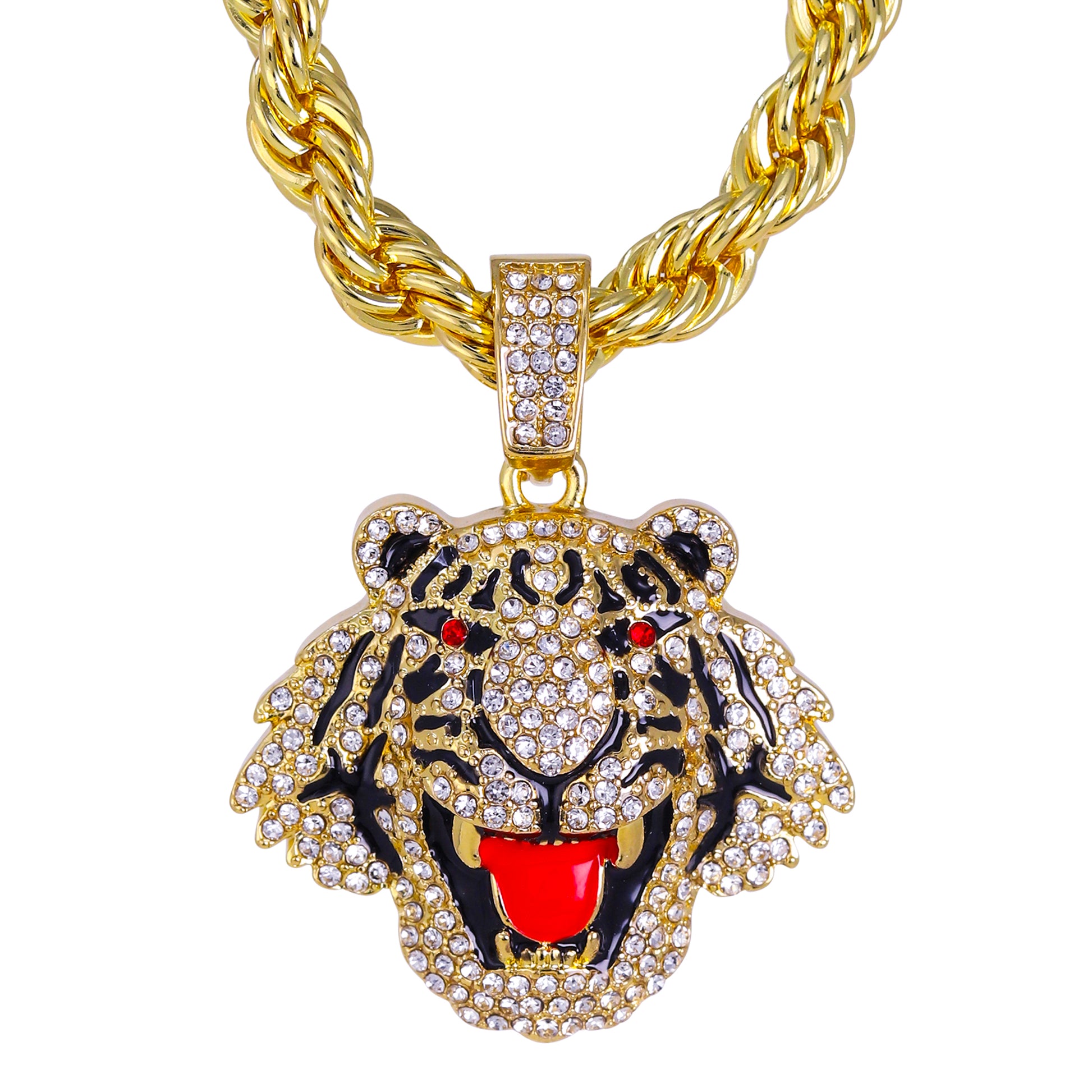 Iced Large Tiger Pendant with 8mm Rope Chain 24" - HC-8072