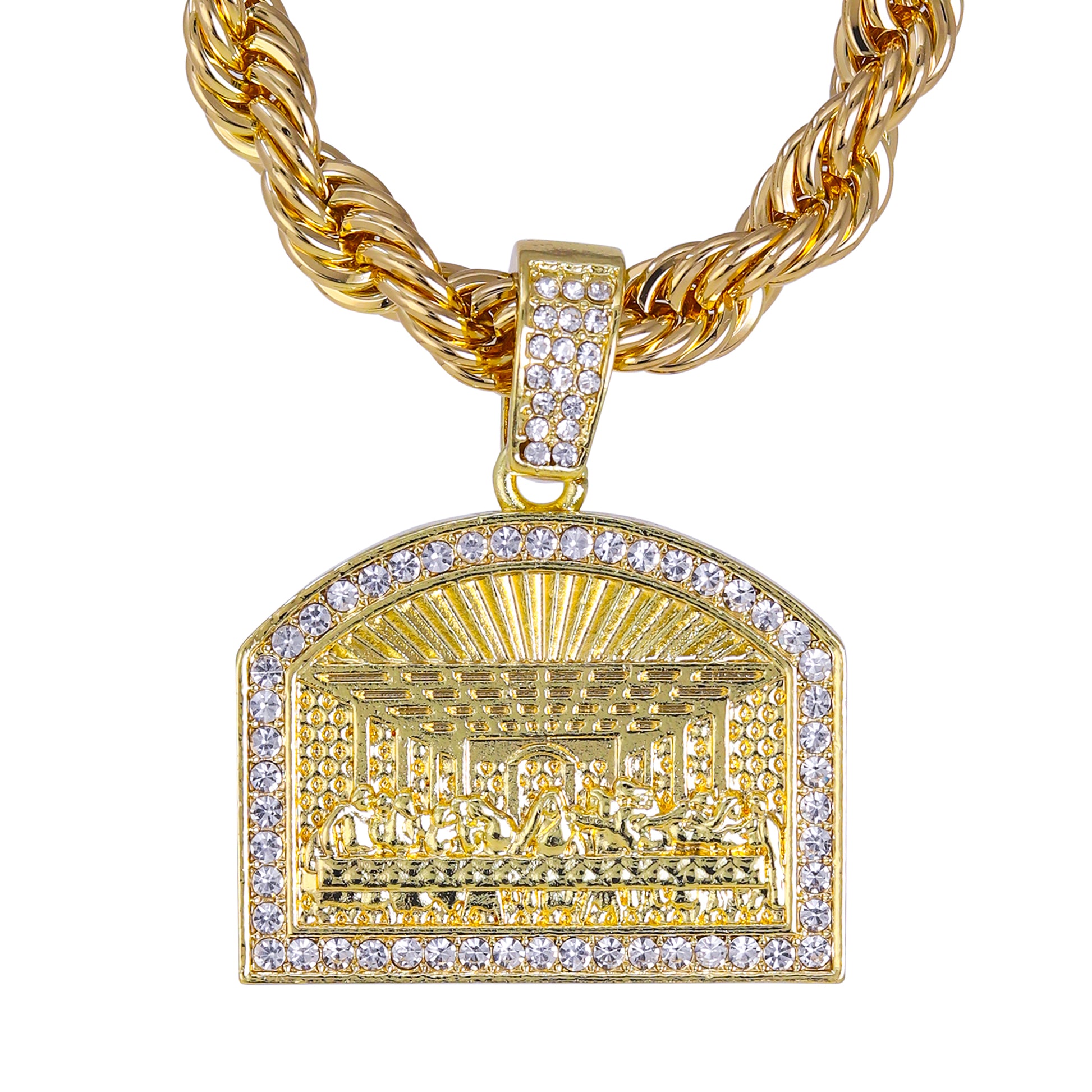 Iced Large Last Supper Pendant with 8mm Rope Chain 24" - HC-8076
