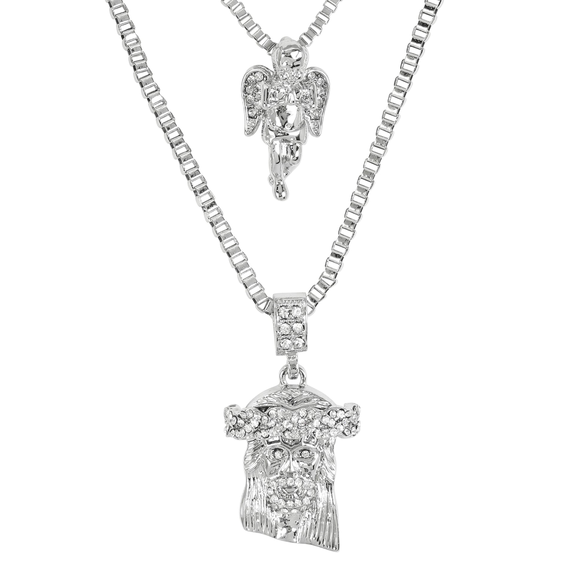 Iced Medium Pendant 2on Necklace Set - MHC-102