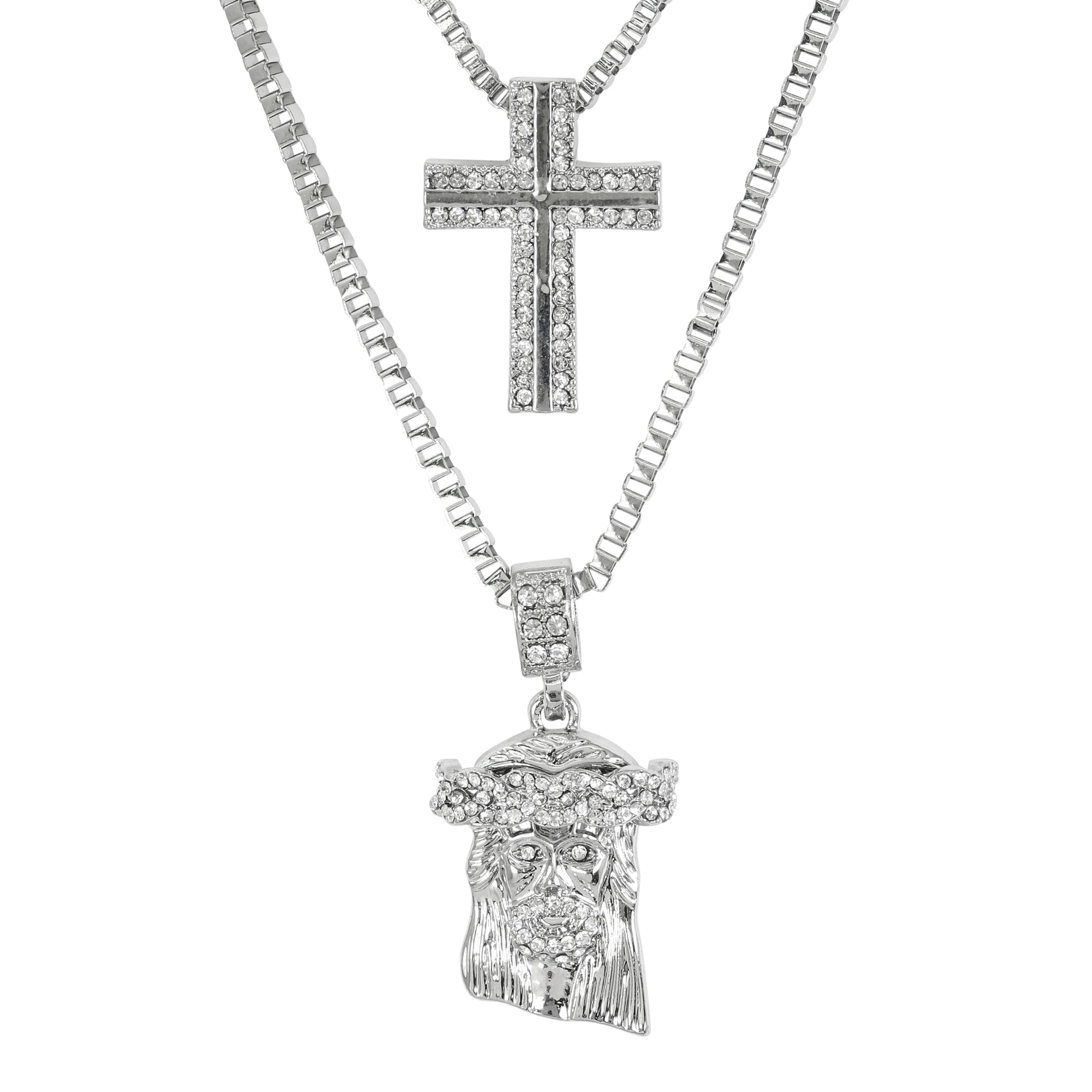 Iced Medium Pendant 2on Necklace Set - MHC-104