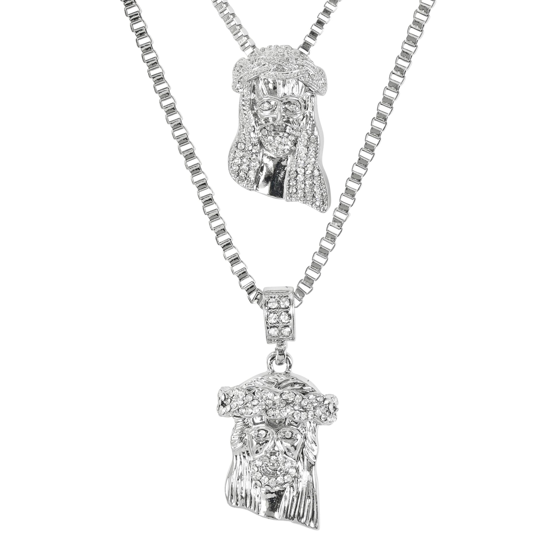 Iced Medium Pendant 2on Necklace Set - MHC-106