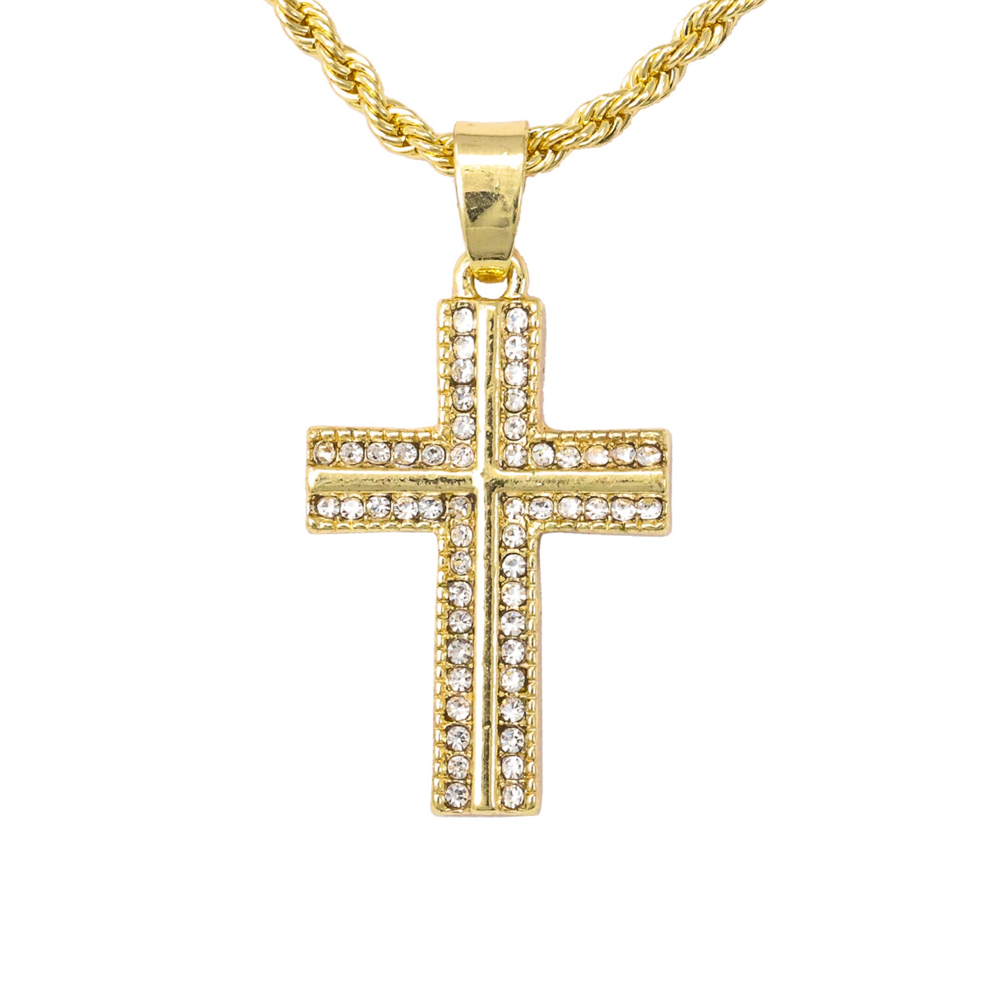 Iced Mini Cross Pendant with 3mm Rope Chain 24" - HC-206