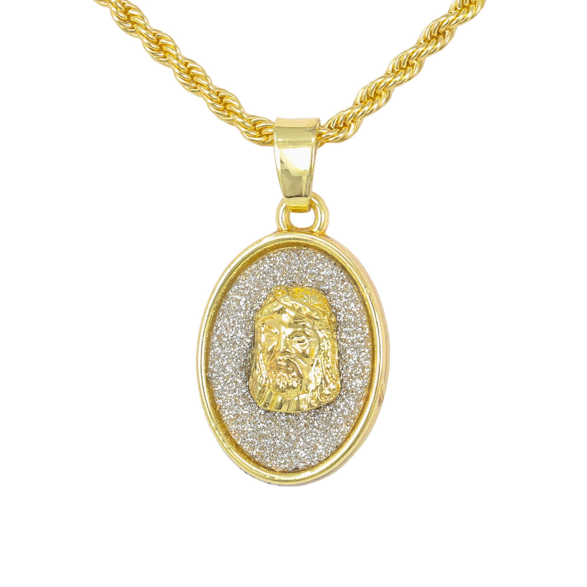 Iced Mini Jesus Pendant with 3mm Rope Chain 24" - HC-234**