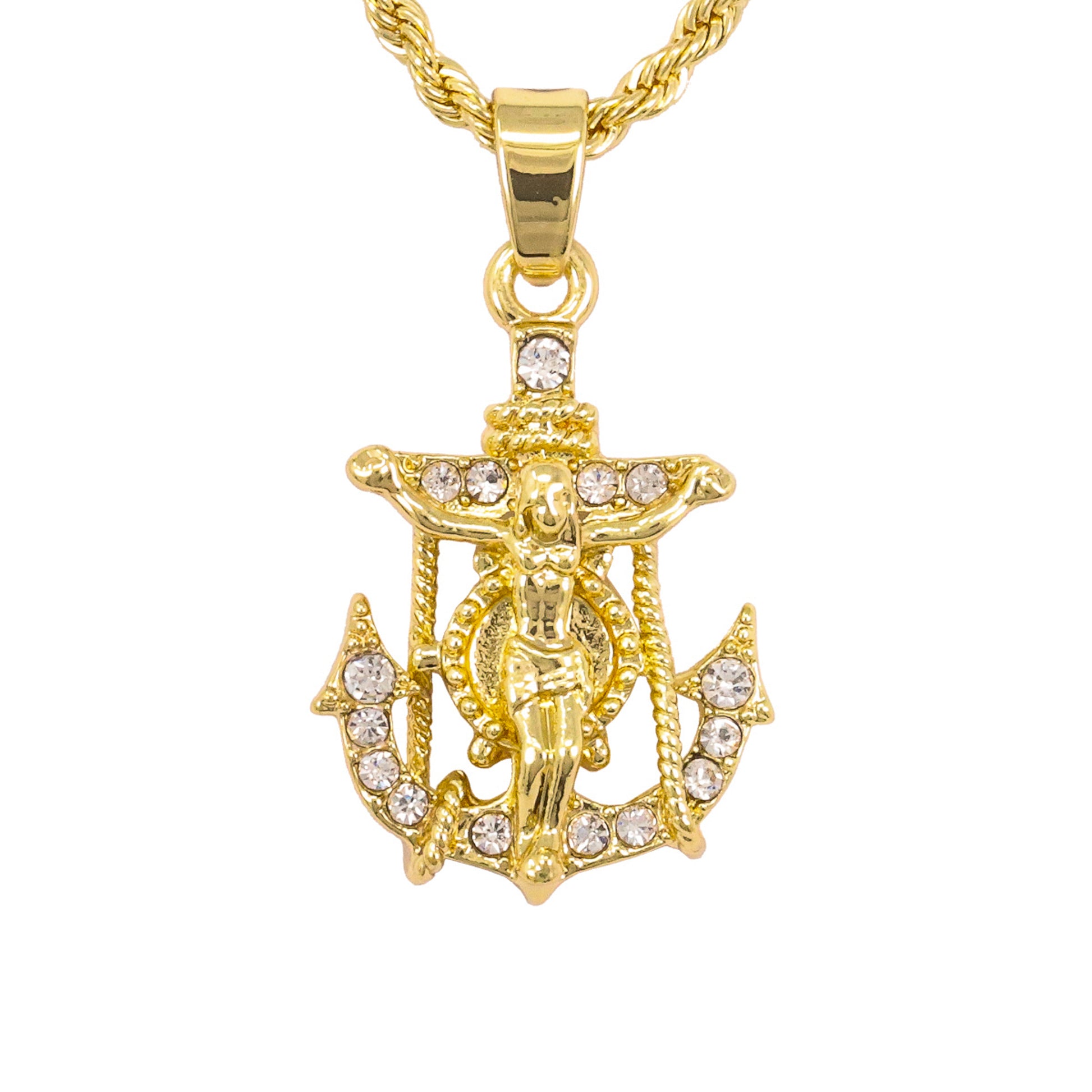 Iced Mini Mariners Cross Pendant on 3mm Rope Chain 24" - HC-257