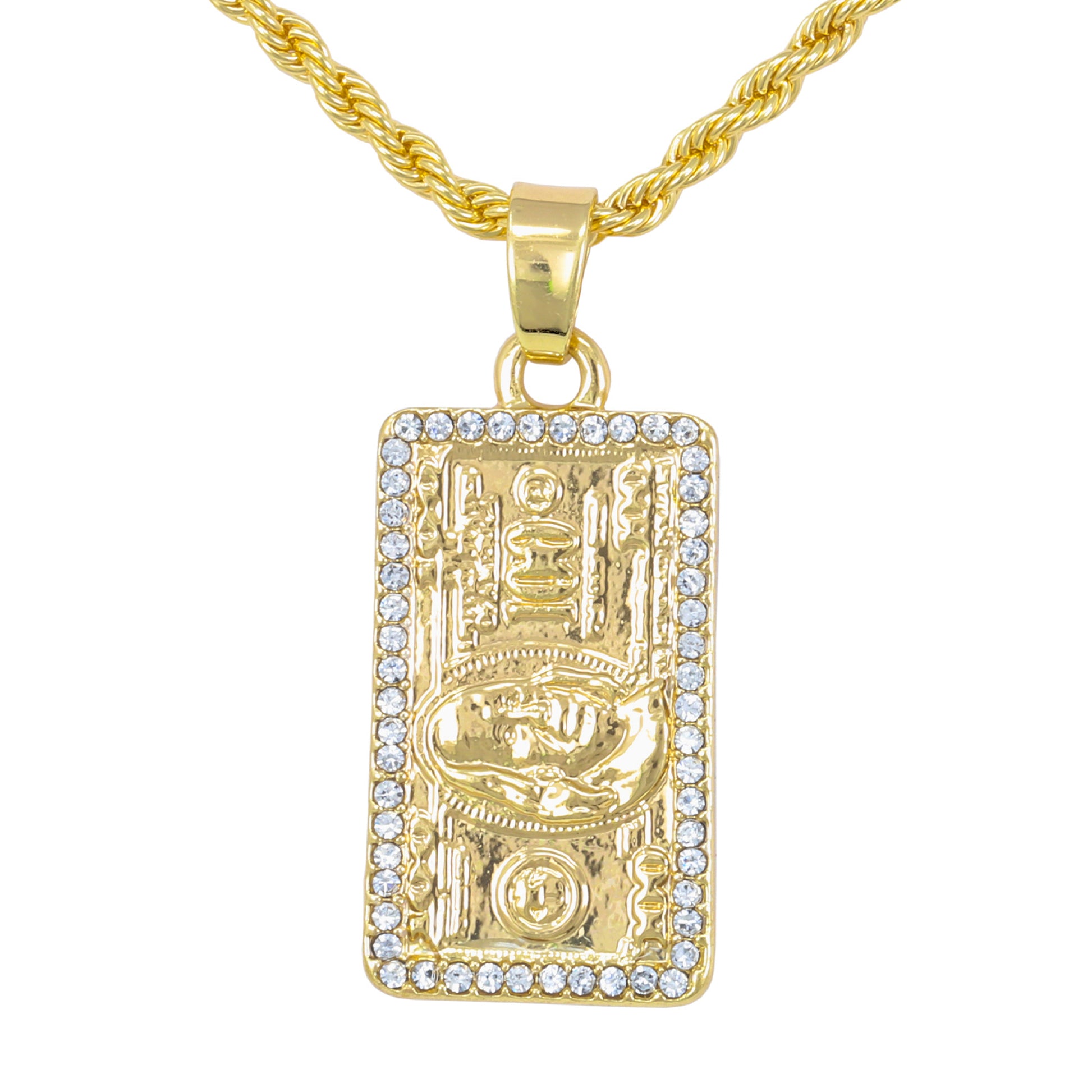 Iced Mini Money Pendant with 3mm Rope Chain 24" - HC-325