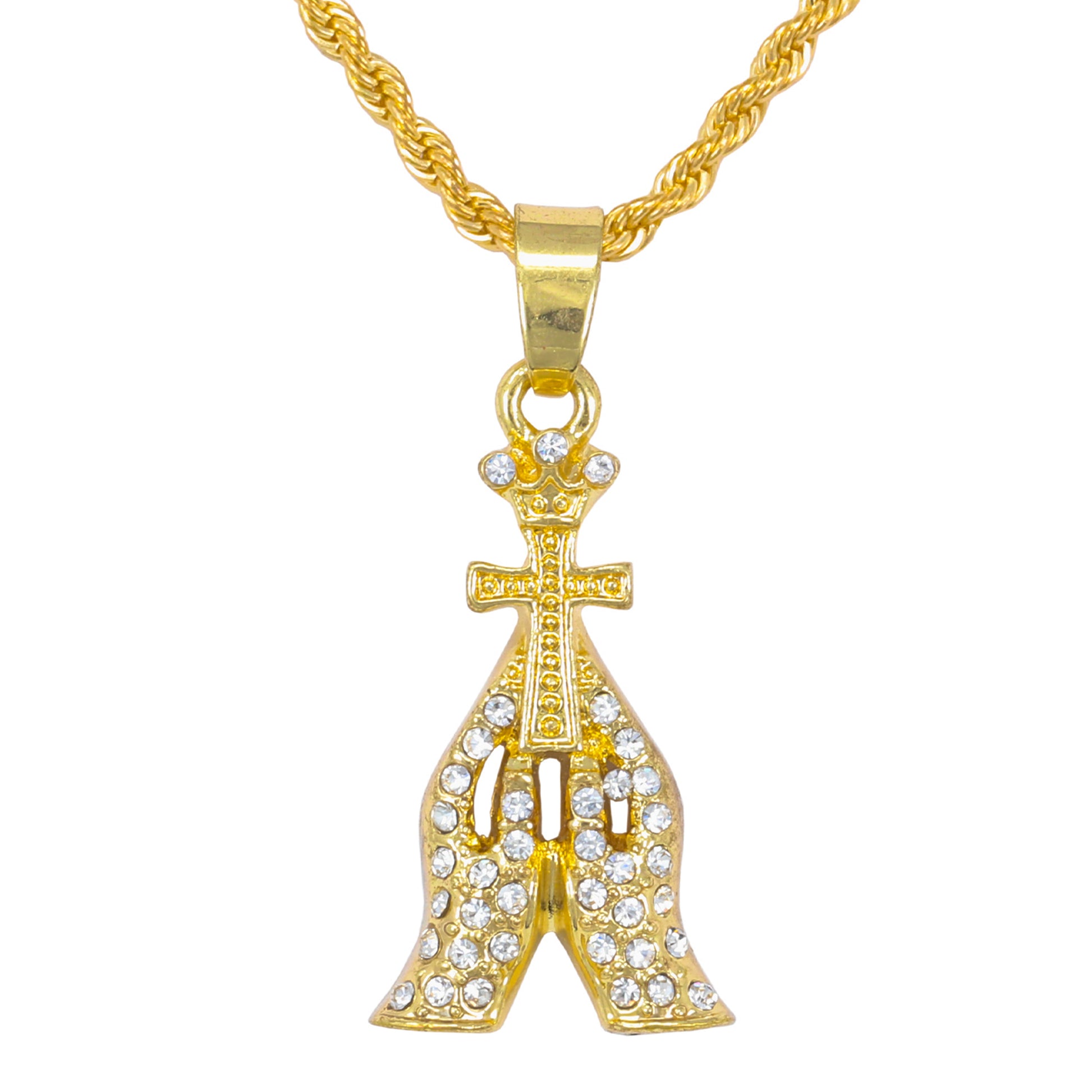Iced Mini Praying Hands Pendant with 3mm Rope Chain 24" - HC-332**
