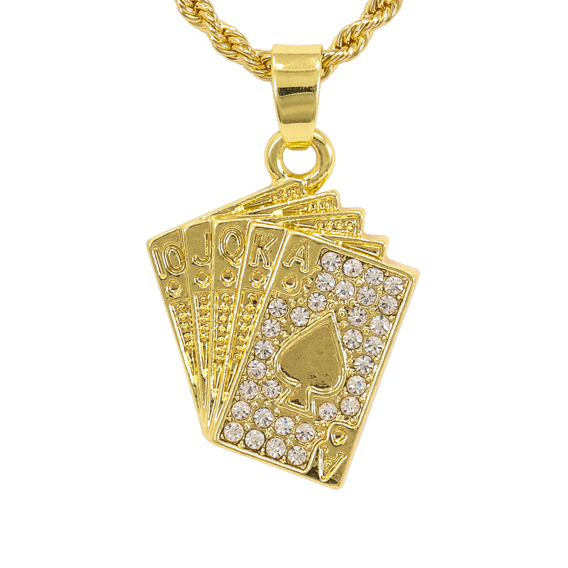 Iced Mini RoyalFlush Pendant with 3mm Rope Chain 24" - HC-342
