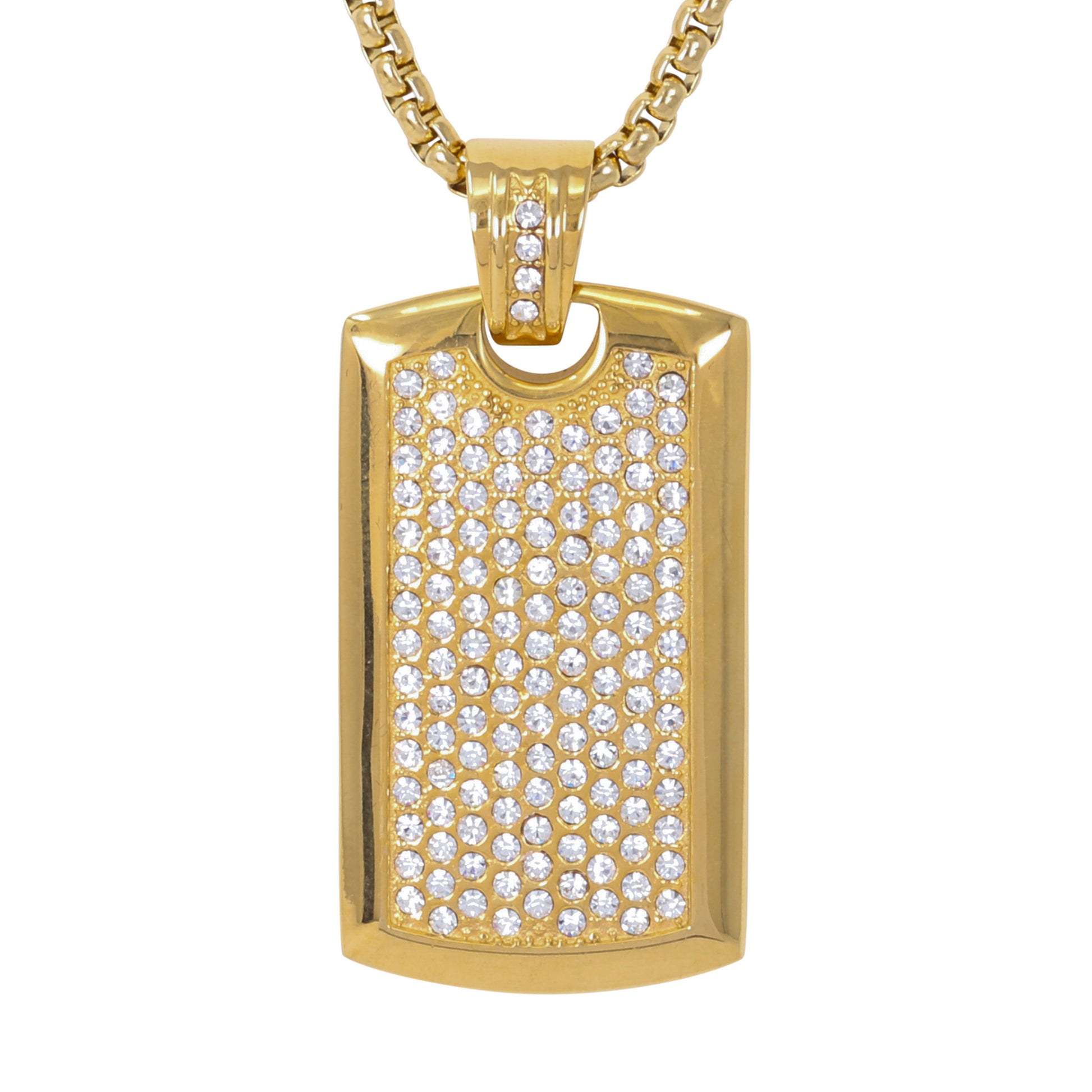 Large Iced Tag Necklace with 3mm Round Box Chain 24" - SCP-3059**