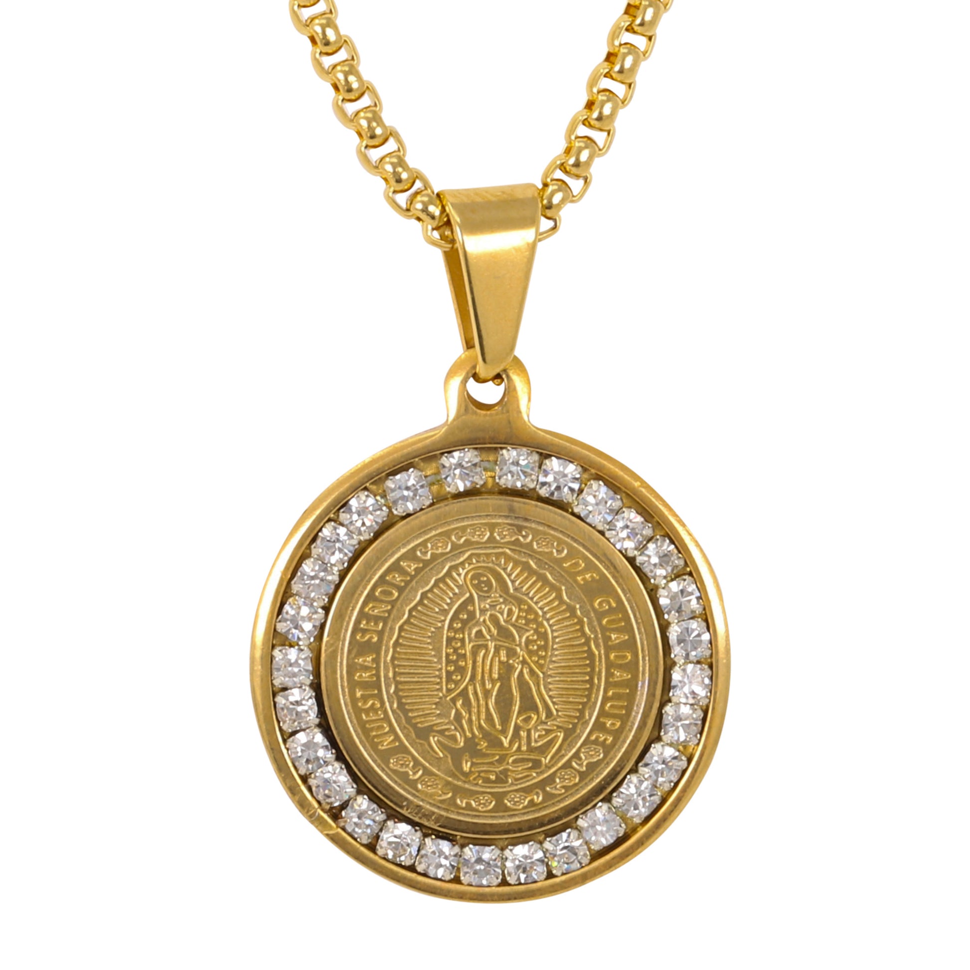Medium Guadalupe Necklace with 3mm Round Box Chain 24" - SCP-135**