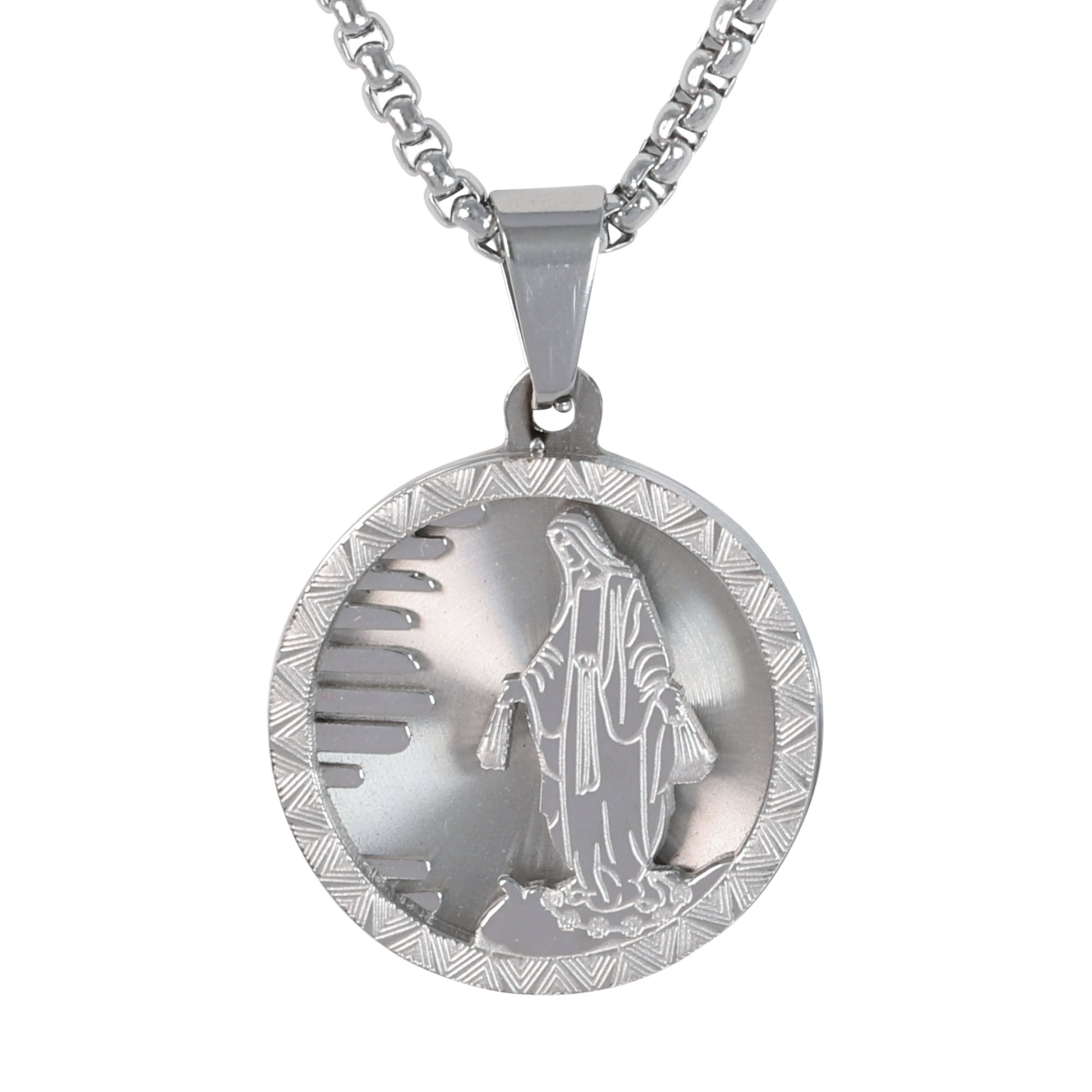 Our Stainless Steel Medium Pendant Series is available in gold and silver plated finish. These pendants come with a 3mm Round Box Chain measuring 24" length. With a 2-inch pendant size, this collection offers a stylish and subtle choice.