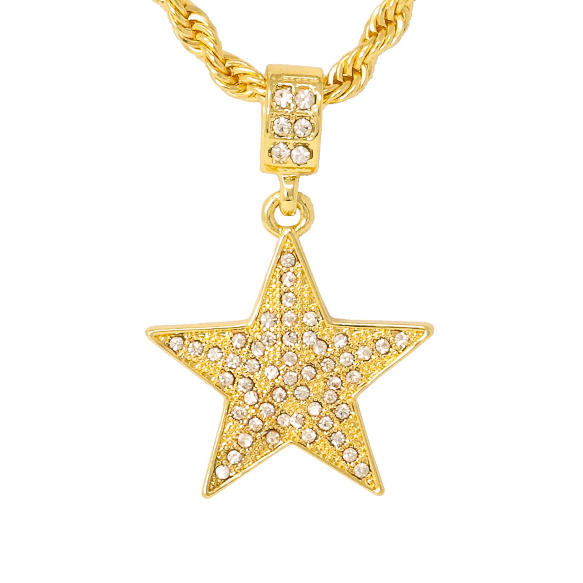 Iced Medium Star Pendant with 4mm Rope Chain 24" - HC-1013*