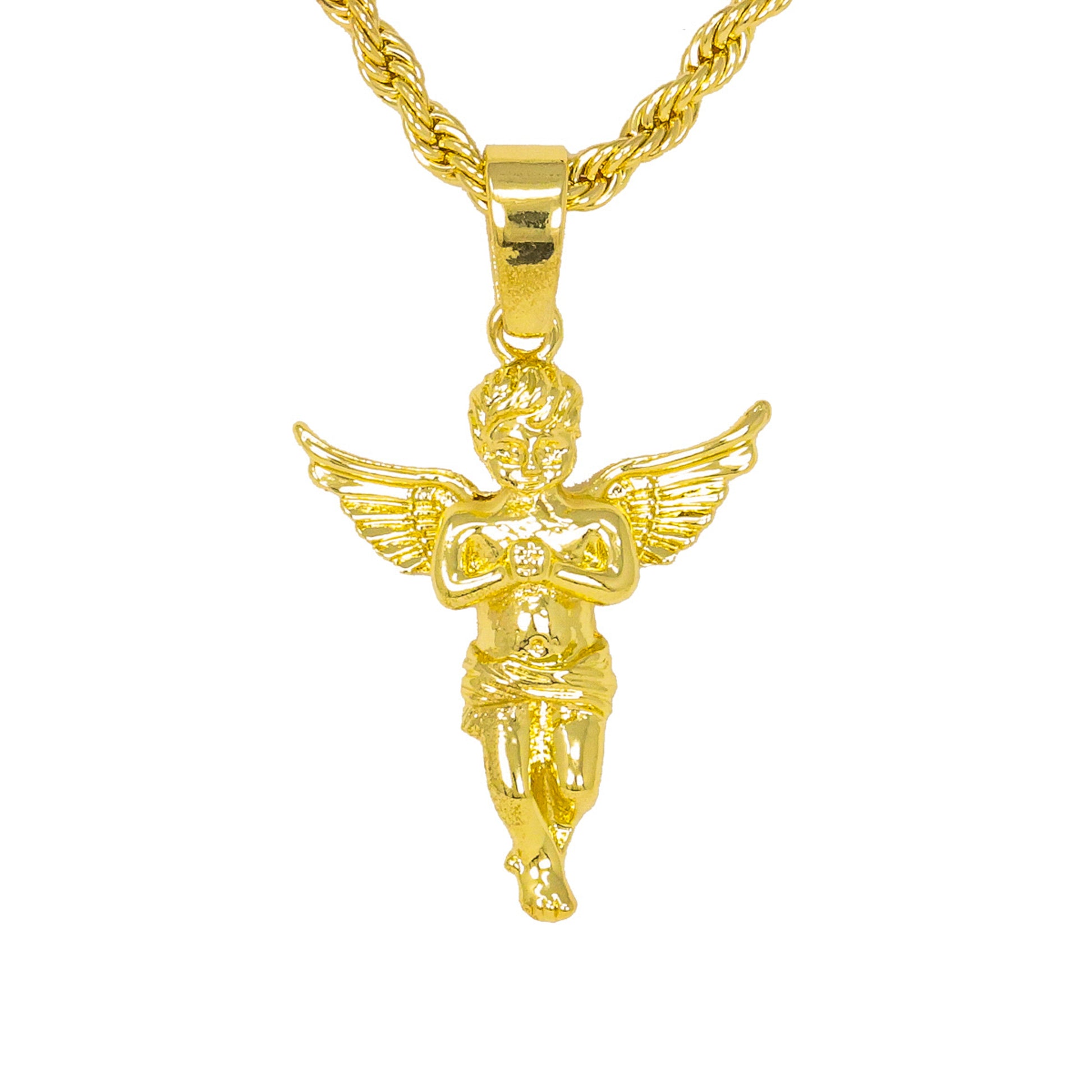 Iced Medium Angel Pendant with 4mm Rope Chain 24" - HC-1091*