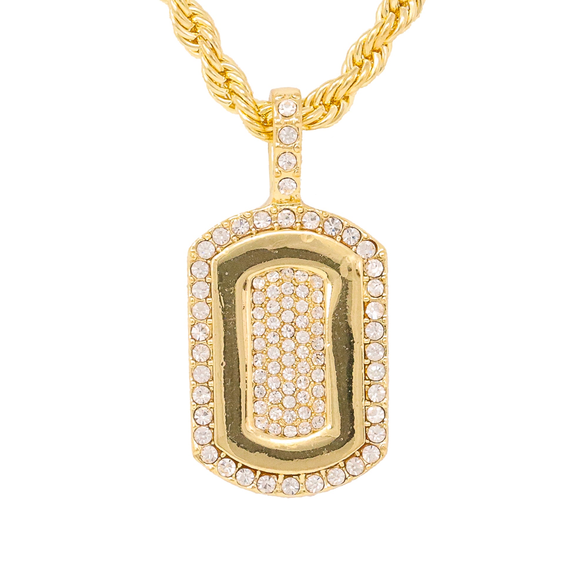 Iced Medium Tag Pendant with 4mm Rope Chain 24" - HC-1131*