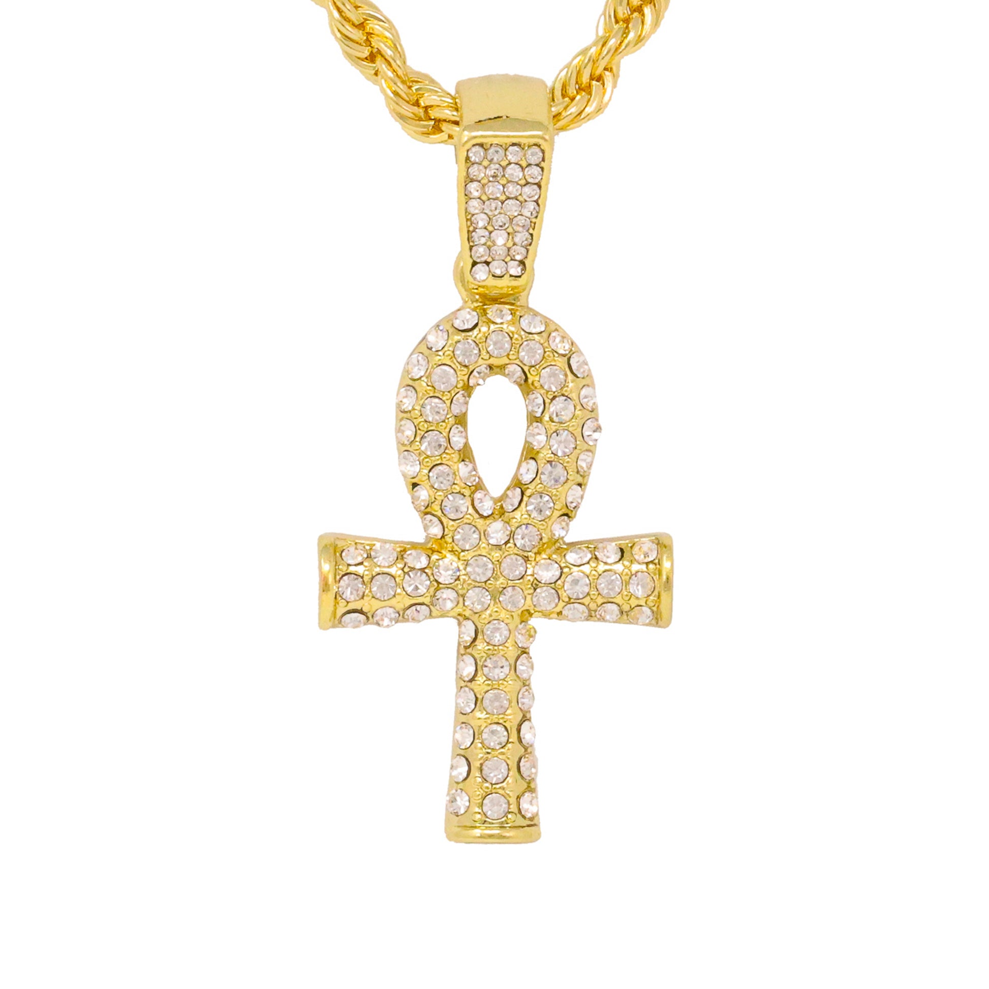 Iced Medium Ankh Cross Pendant with 4mm Rope Chain 24" - HC-1168*
