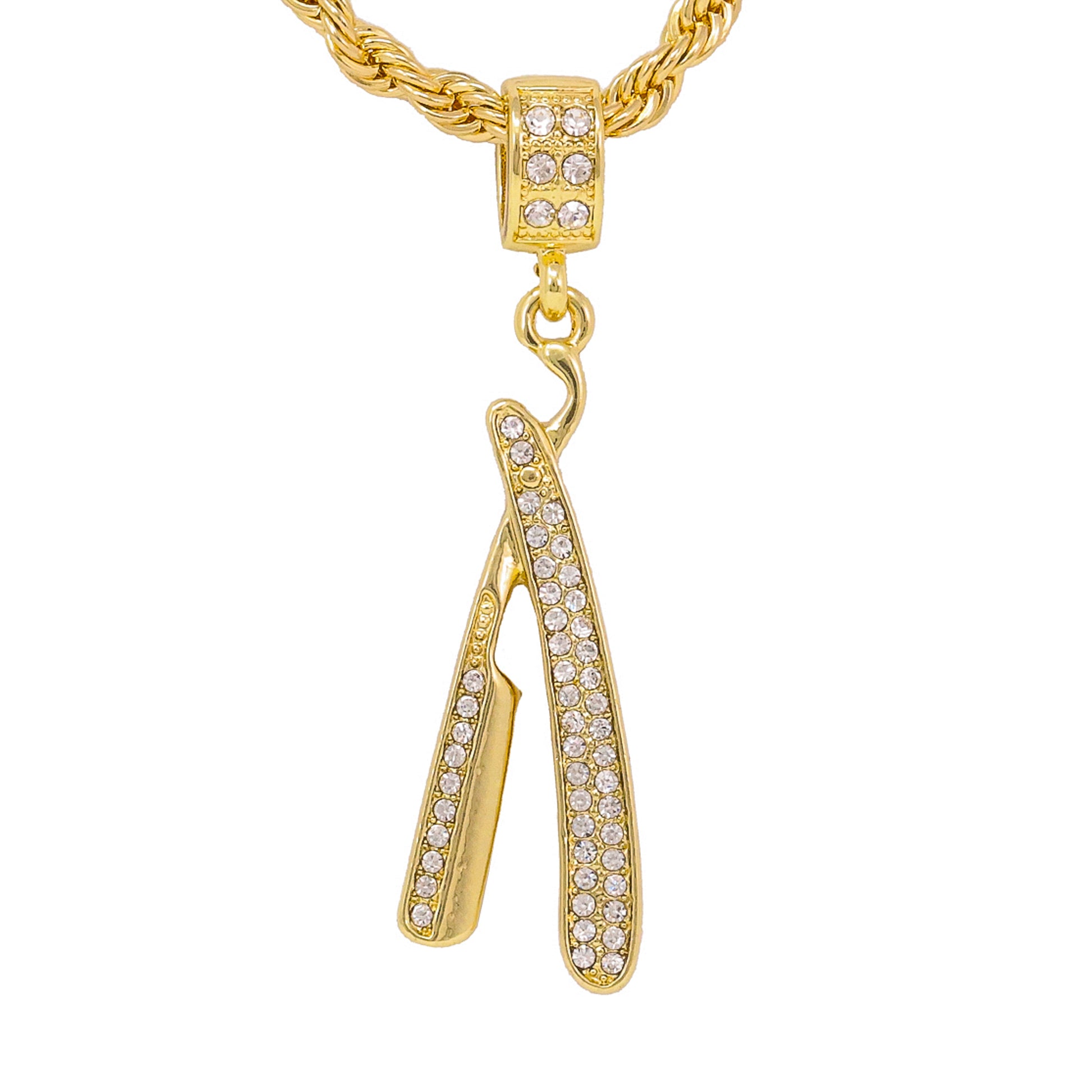 Iced Medium Razor Pendant with 4mm Rope Chain 24" - HC-1182