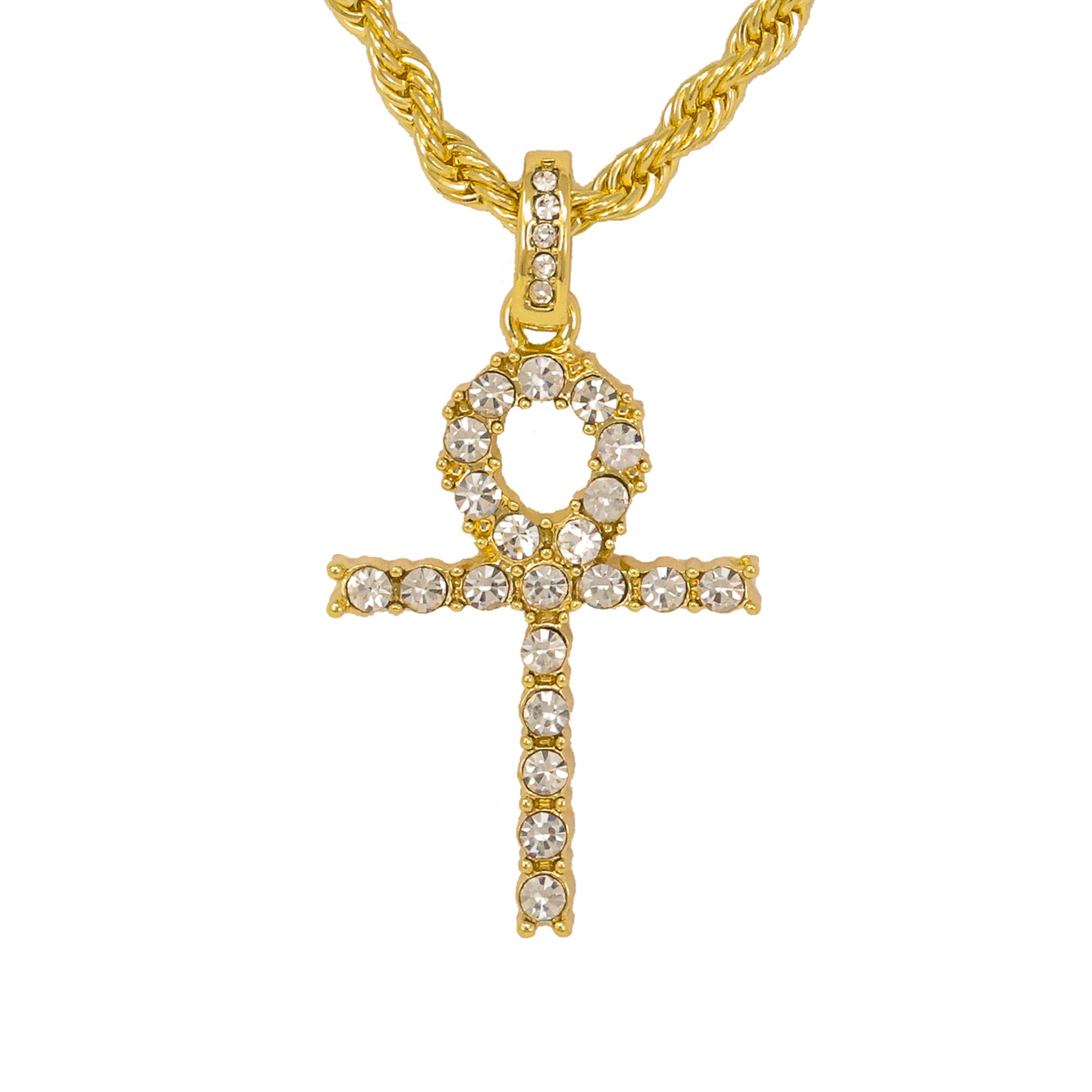 Iced Medium Ankh Cross Pendant with 4mm Rope Chain 24" - HC-1291*