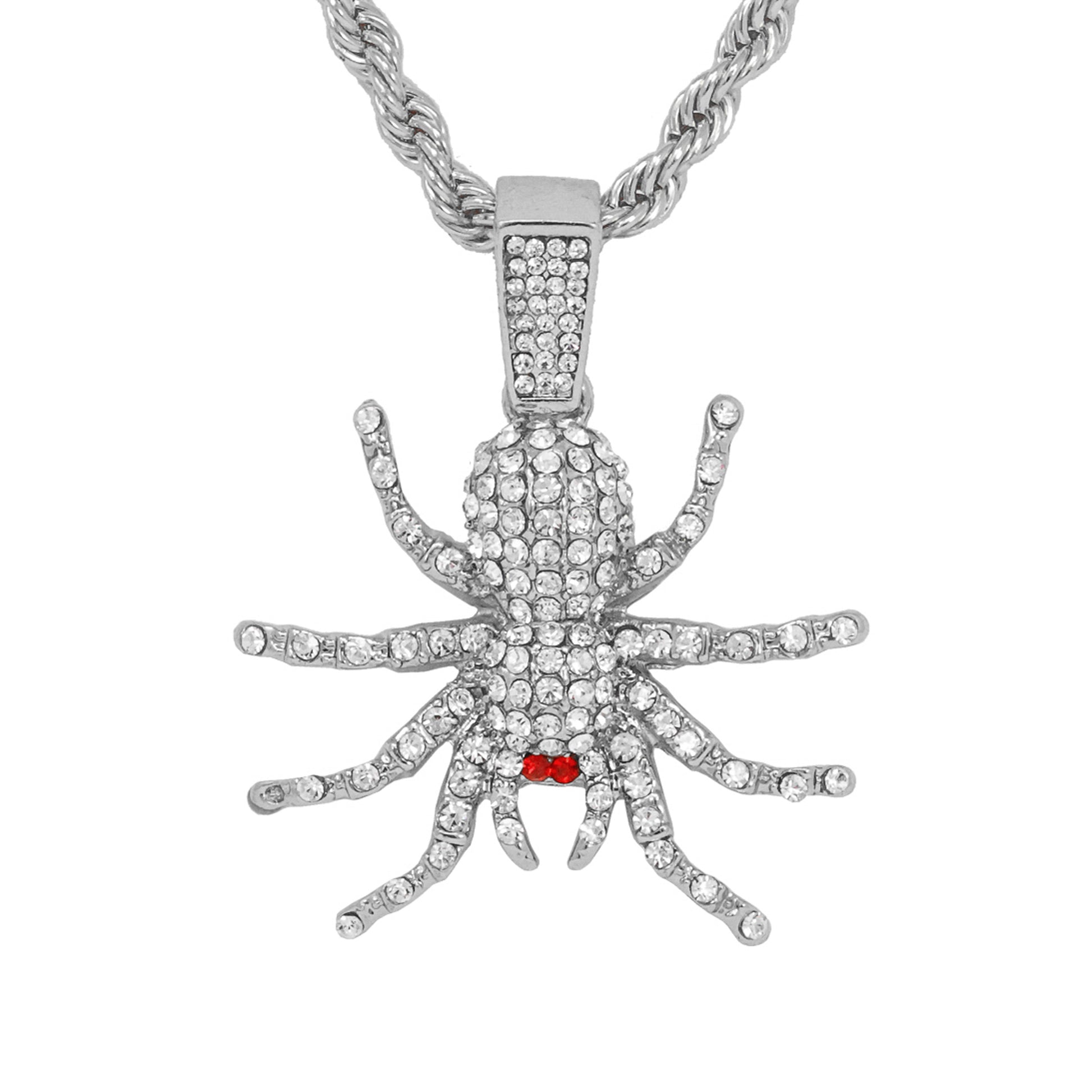 Iced Medium Spider Pendant with 4mm Rope Chain 24" - HC-1367