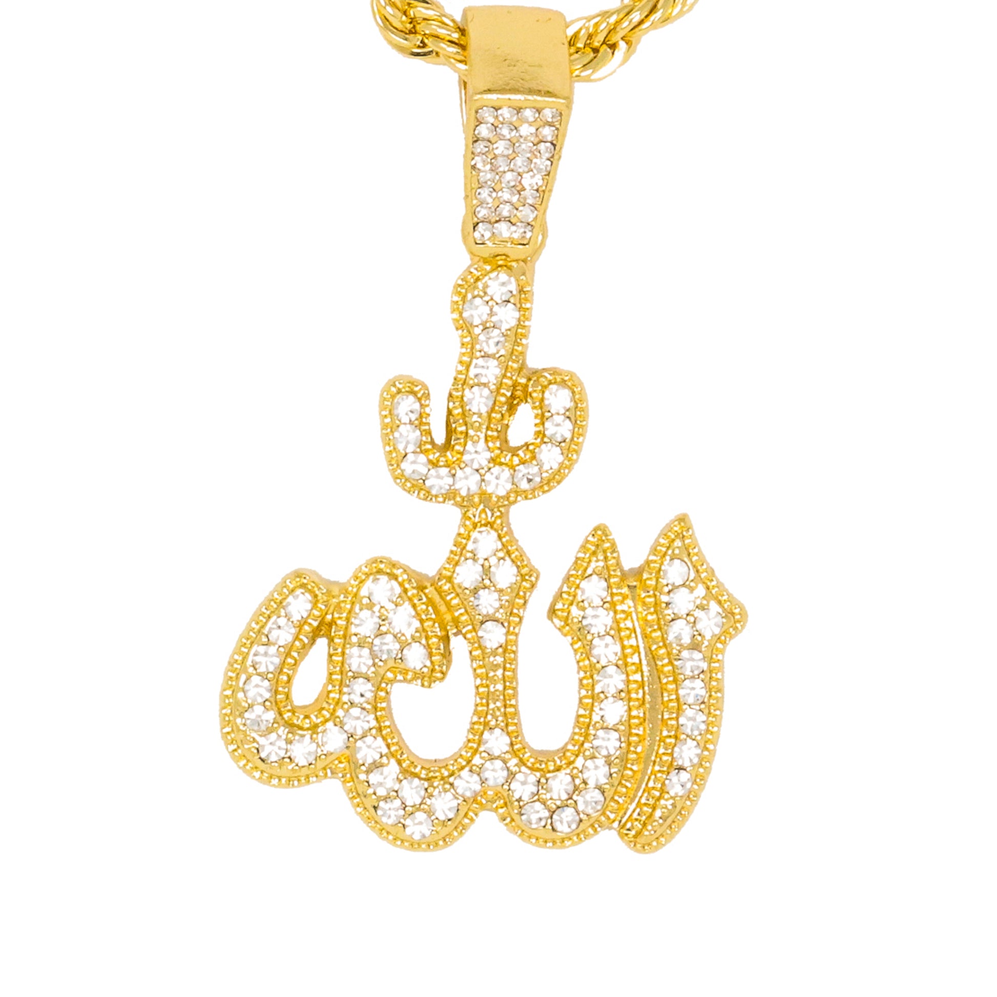 Our Iced Out Medium Pendant Series is available in gold and silver plated alloy. These pendants come with a 4mm Solid Rope Chain measuring 24" in length and feature simulated crystals that resemble the sparkle of real diamonds.