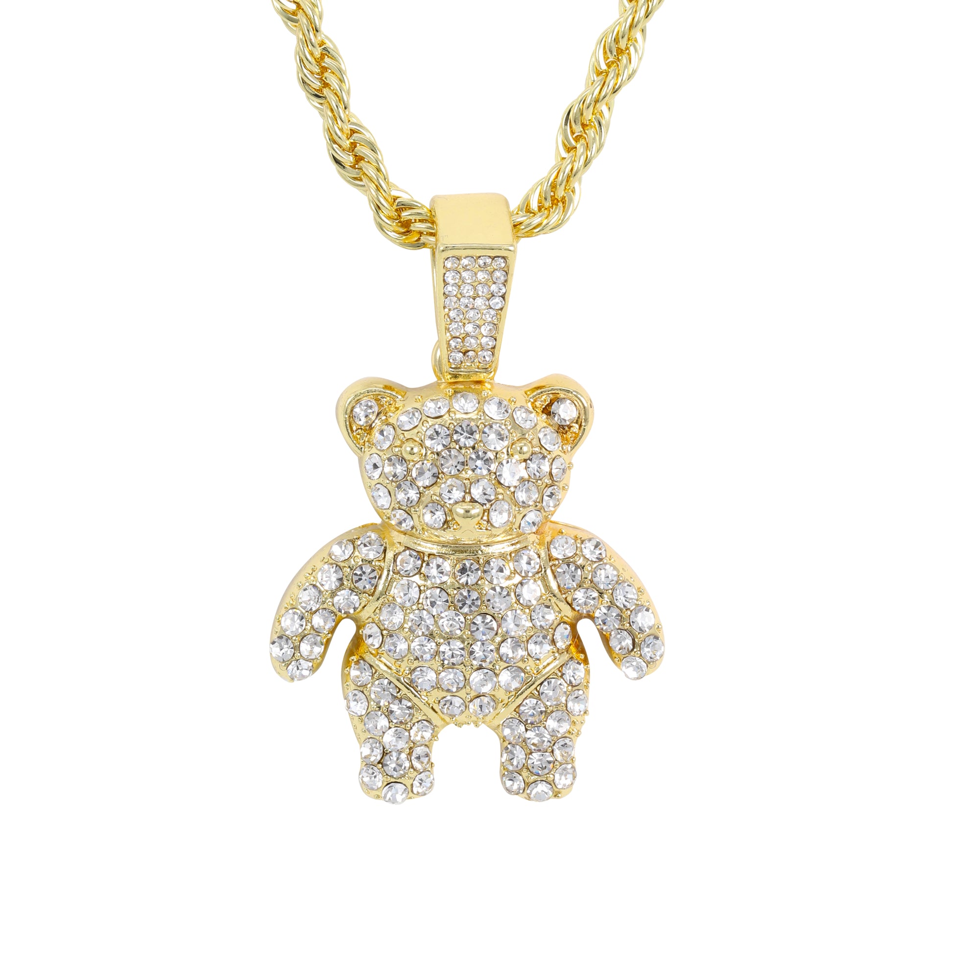 Iced Medium Teddy Bear Pendant with 4mm Rope Chain 24" - HC-1709