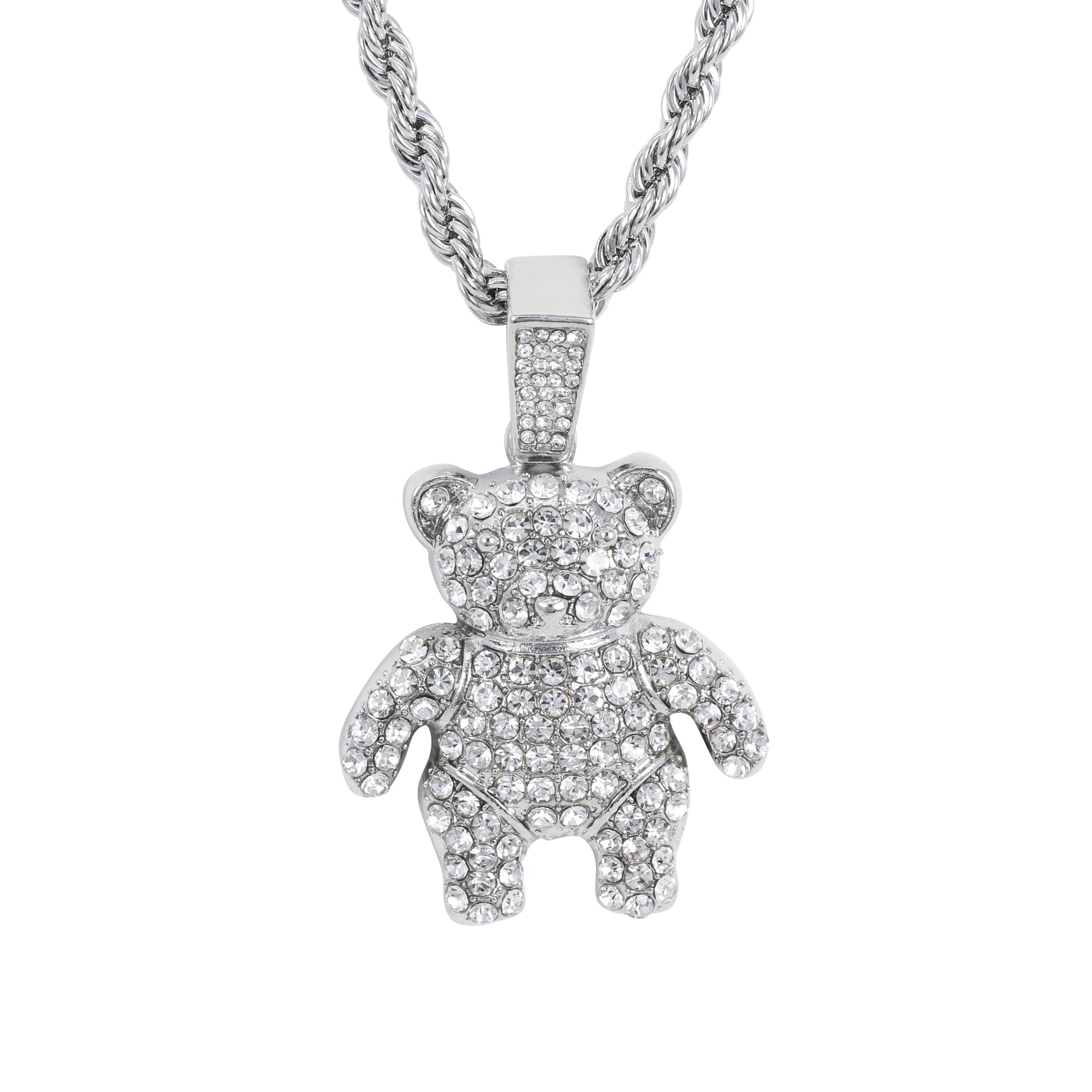 Our Iced Out Medium Pendant Series is available in gold and silver plated alloy. These pendants come with a 4mm Solid Rope Chain measuring 24" in length and feature simulated crystals that resemble the sparkle of real diamonds.