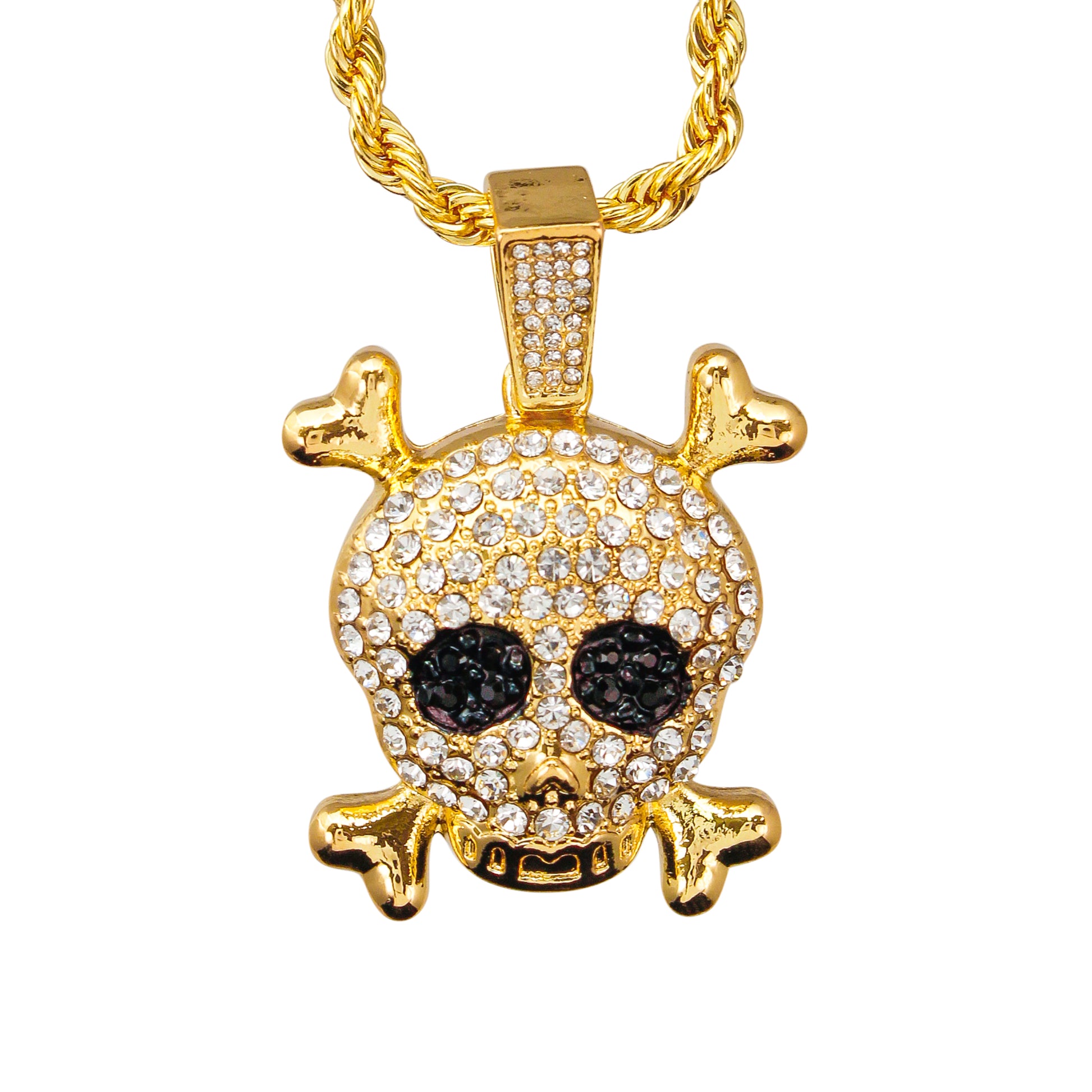 Iced Medium Skull Pendant with 4mm Rope Chain 24" - HC-1785
