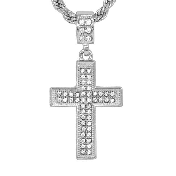 Our Iced Out Medium Pendant Series is available in gold and silver plated alloy. These pendants come with a 4mm Solid Rope Chain measuring 24" in length and feature simulated crystals that resemble the sparkle of real diamonds.
