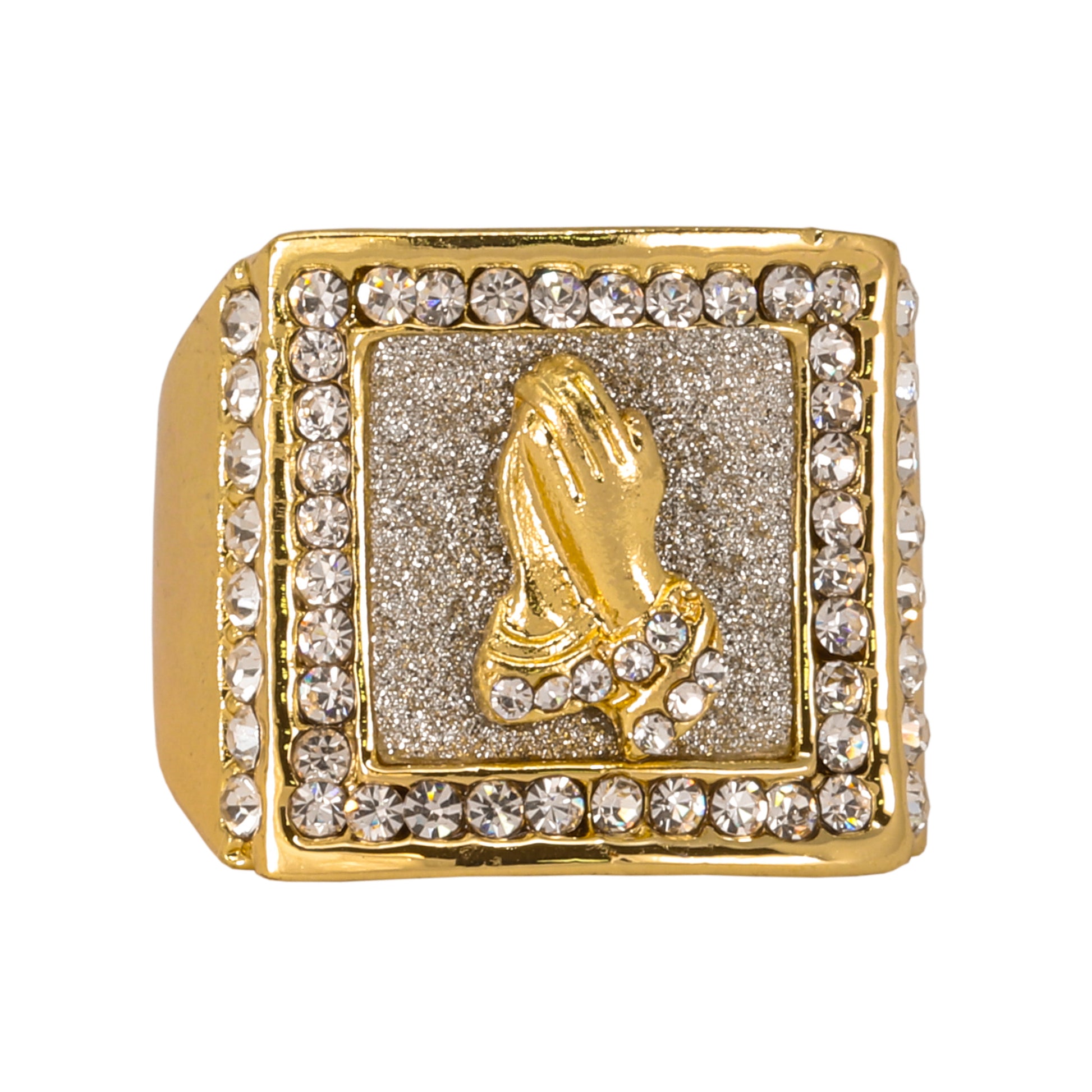 Mens One Size Iced Out Praying Hands Ring - HR-22